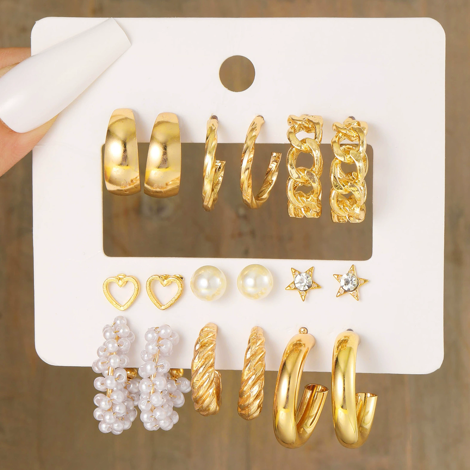 | nameOriginal | Metal twist 9-piece fashionable earring set |