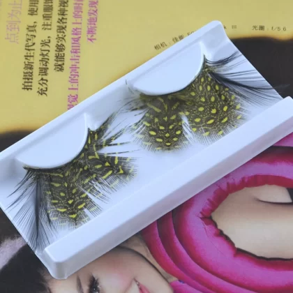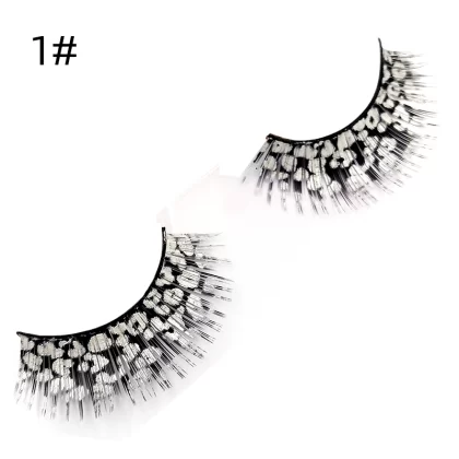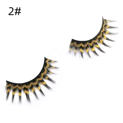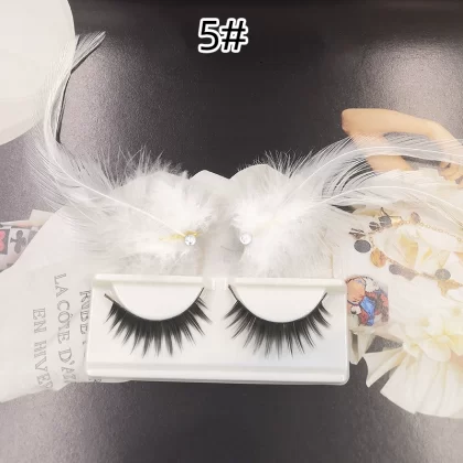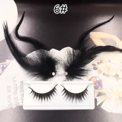 Metal color feathers drill fake eyelashes and eye tails, exaggerated thick Latin dance performances cos makeup ball