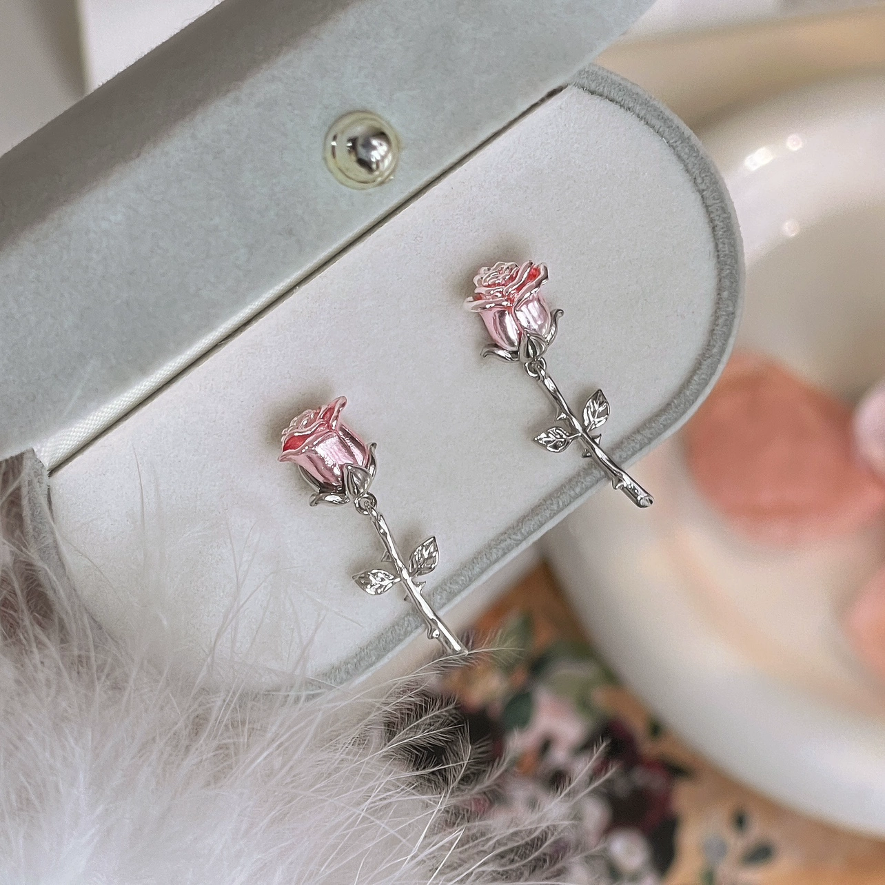 | nameOriginal | Metallic Girly Pink Rose Unique Sterling Silver Earrings |