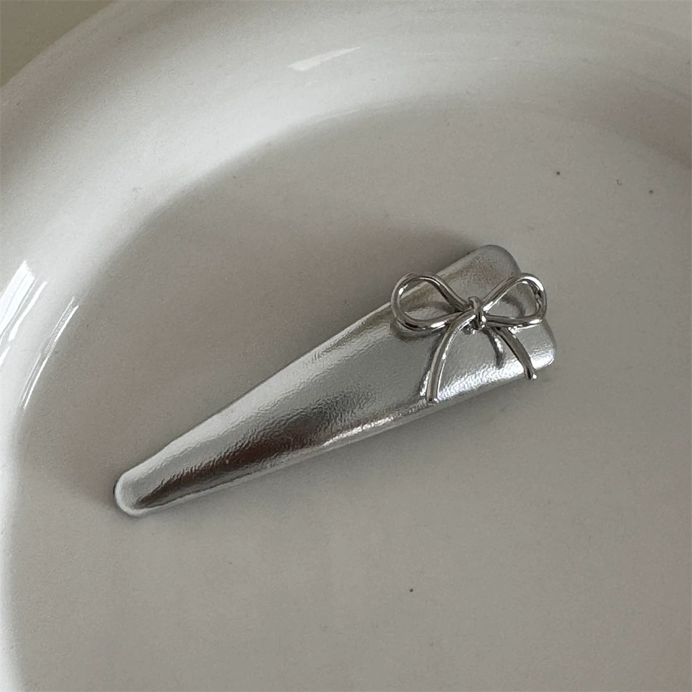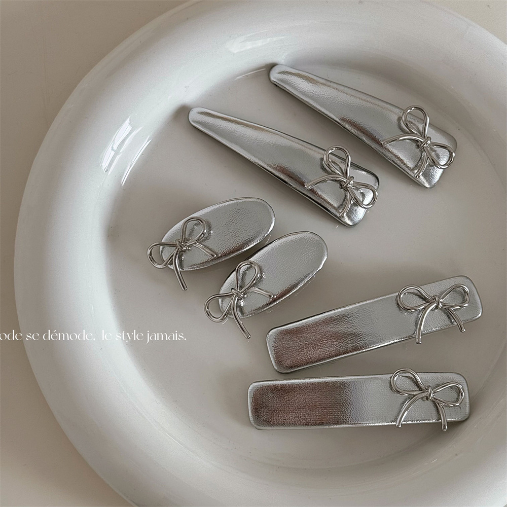 | nameOriginal | Metallic silver leather hairpin simple personalized bow |