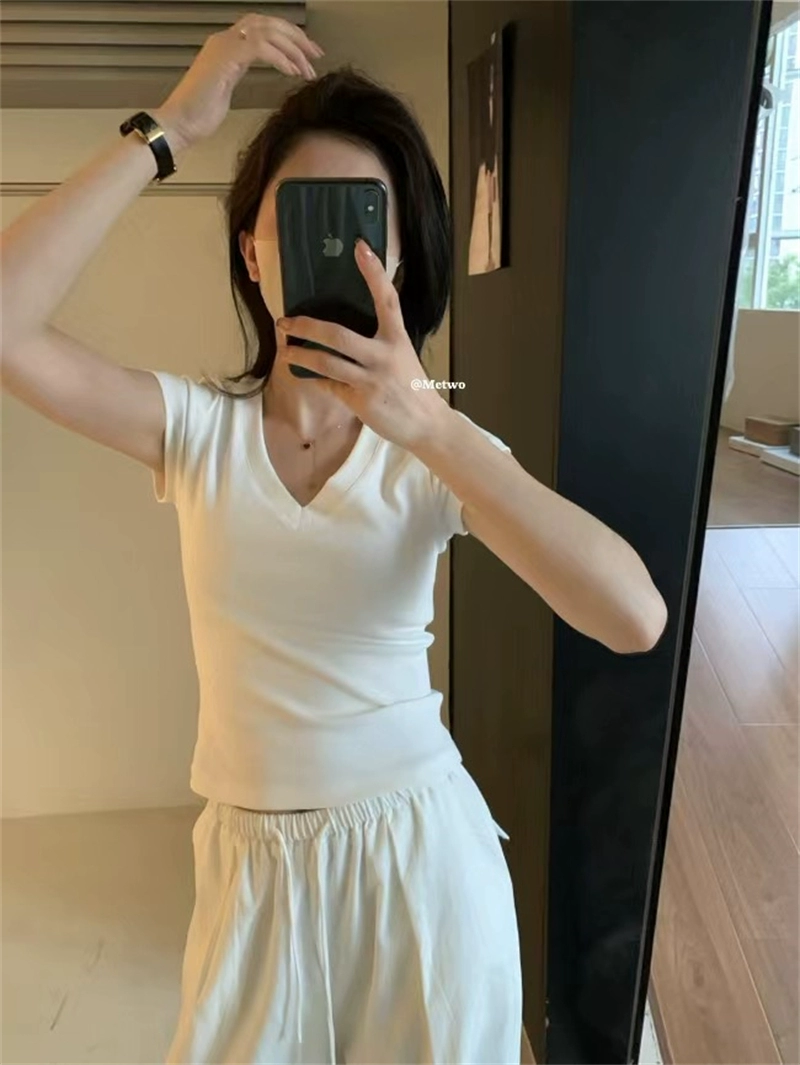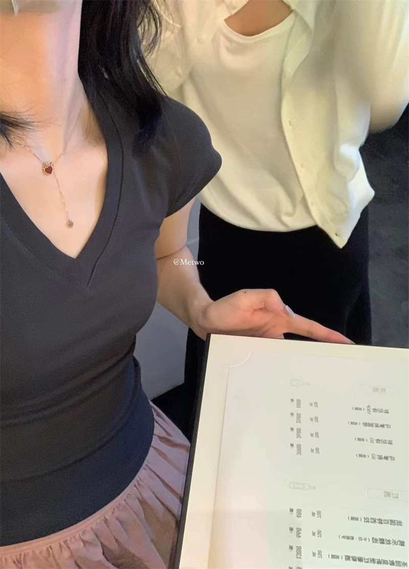 | nameOriginal | METWO 08324#v-neck private clothing gray slim tee summer new casual slim short shoulder top for women |