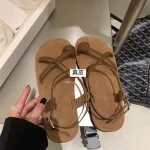 | nameOriginal | METWO brown cross strap flat casual sandals |
