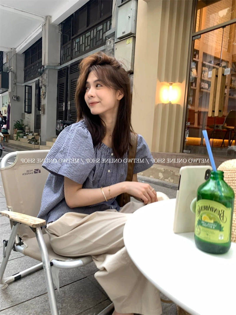 | nameOriginal | METWO two-wear blue striped casual Japanese top shirt |