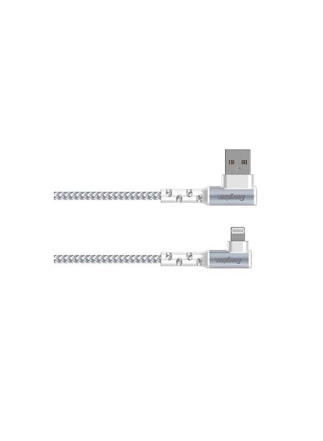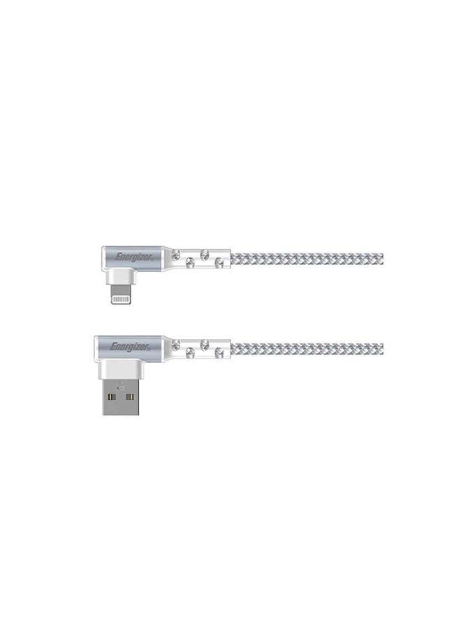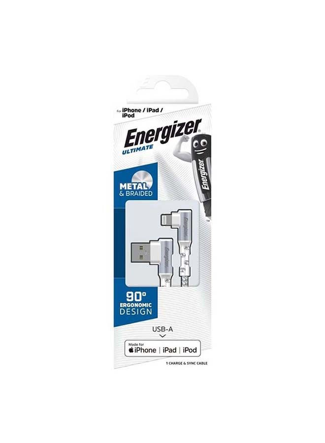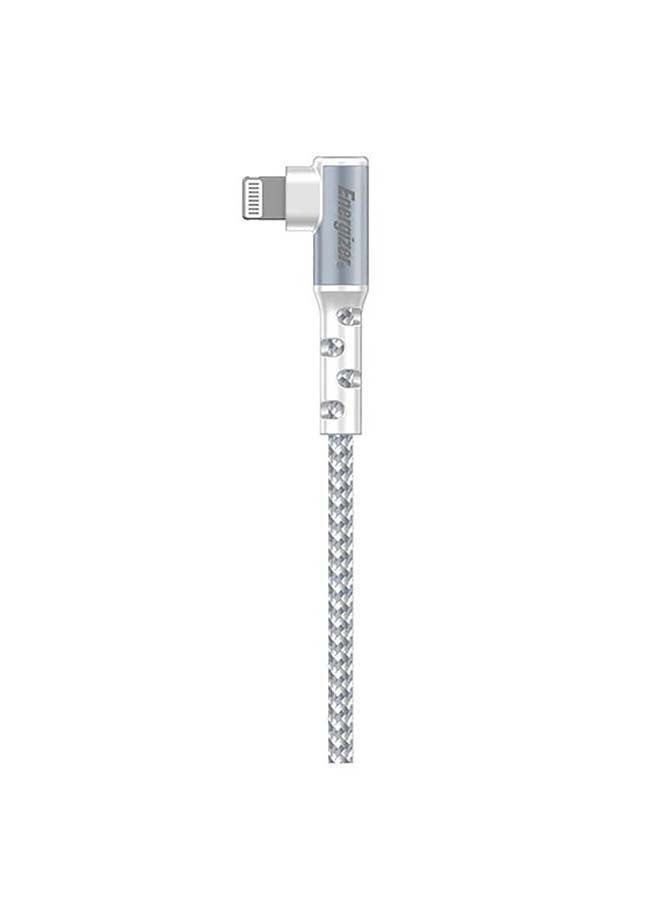 The cable comes in a sleek white color, which complements any device or decor. With its high-quality construction and compatibility with a wide range of devices, the Right Angle 90 Degree MFi Certified Fast Charging Metal Braided Lightning Cable is the perfect choice for anyone looking for a reliable and efficient charging solution.