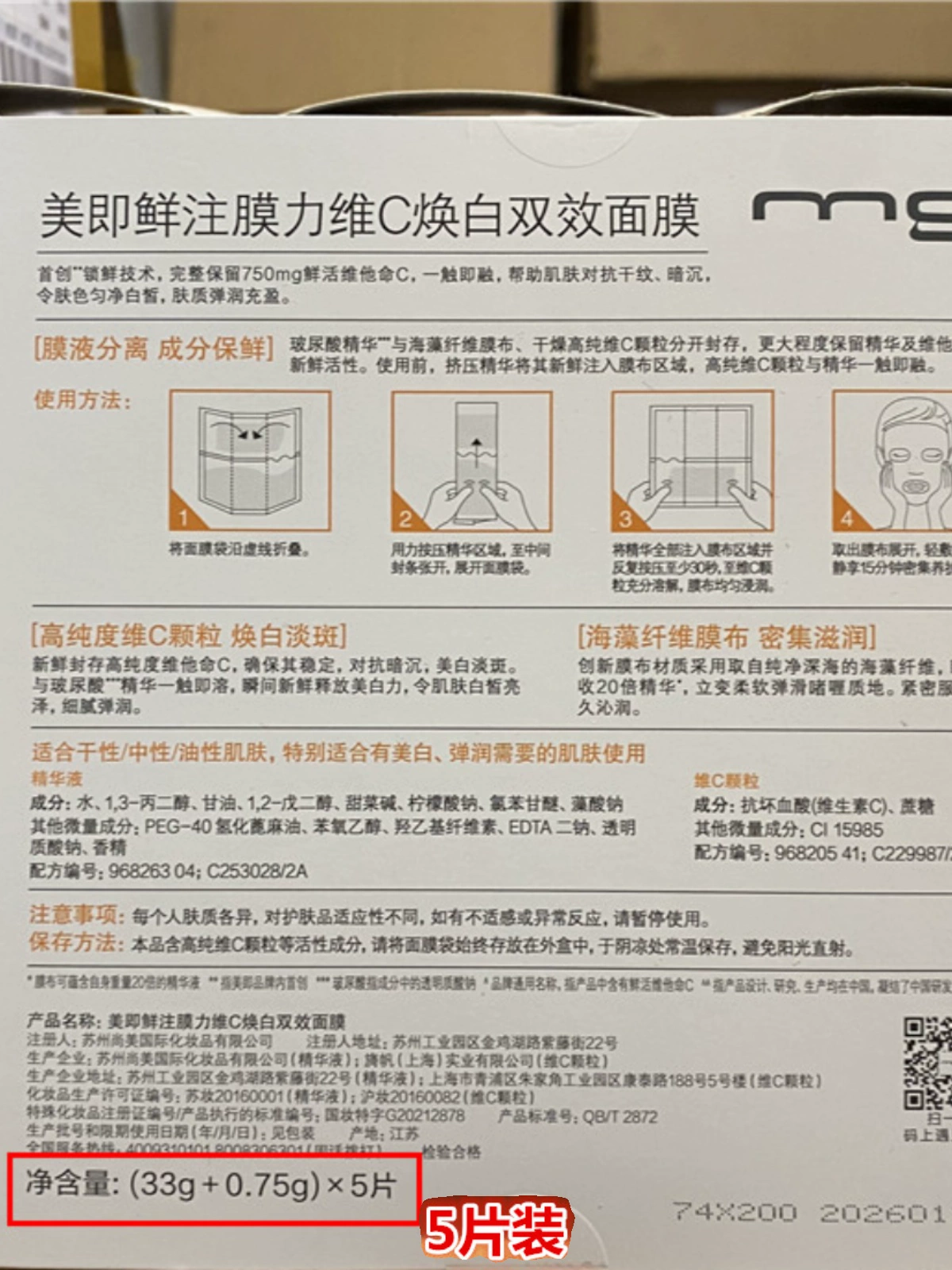 | nameOriginal | MG Meijixian Injection Mask, 5-piece Boxed Vitamin C Whitening Dual-effect Mask, Clear Collagen Moisturizing Antioxidant Hydration |