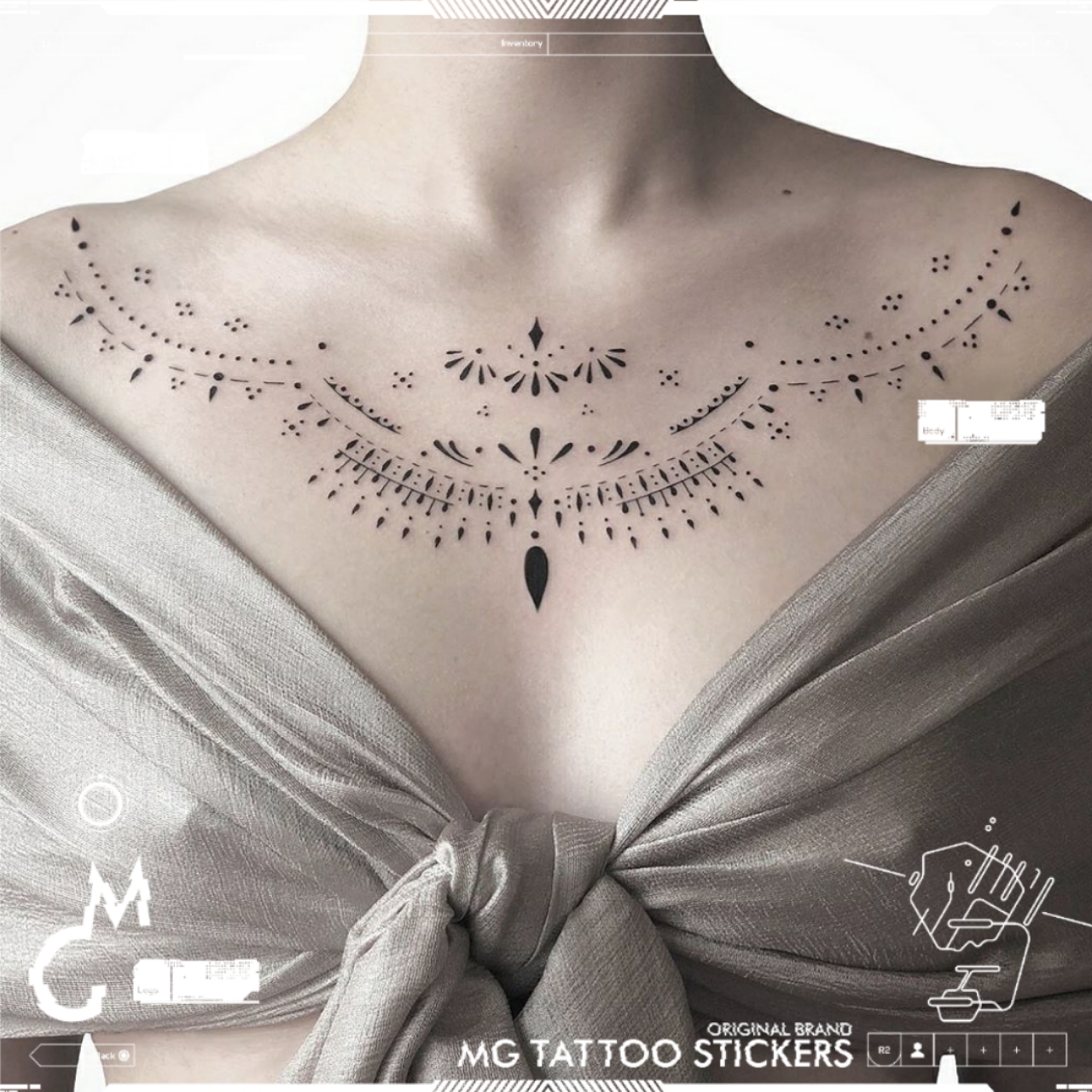 | nameOriginal | MG tattoo elegant and beautiful totem vacation travel photo busty sexy goddess sternum large picture tattoo sticker for women |