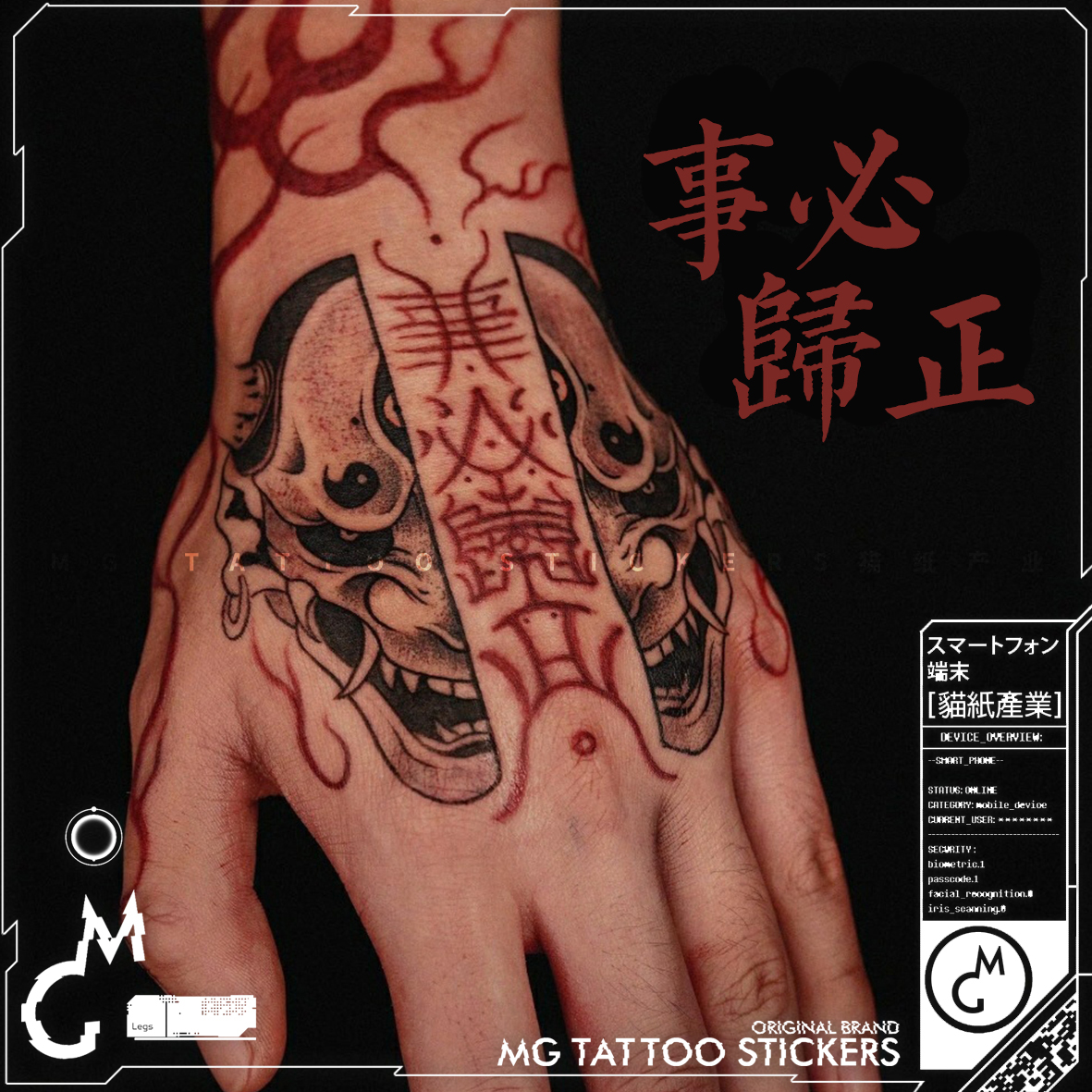 | nameOriginal | MG tattoo Everything must be put right Ukiyo-e dark cinnabar Hannya cool personalized tattoo stickers for men and women on the back of the hand |