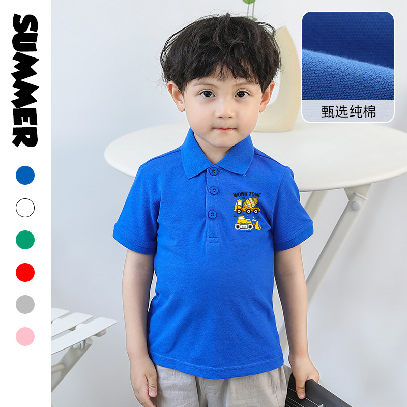 Mi Chun Boys T-shirt Cotton New Korean Style Lapel Half Sleeve Polo Shirt Summer Cartoon Printed Children's Short Sleeve