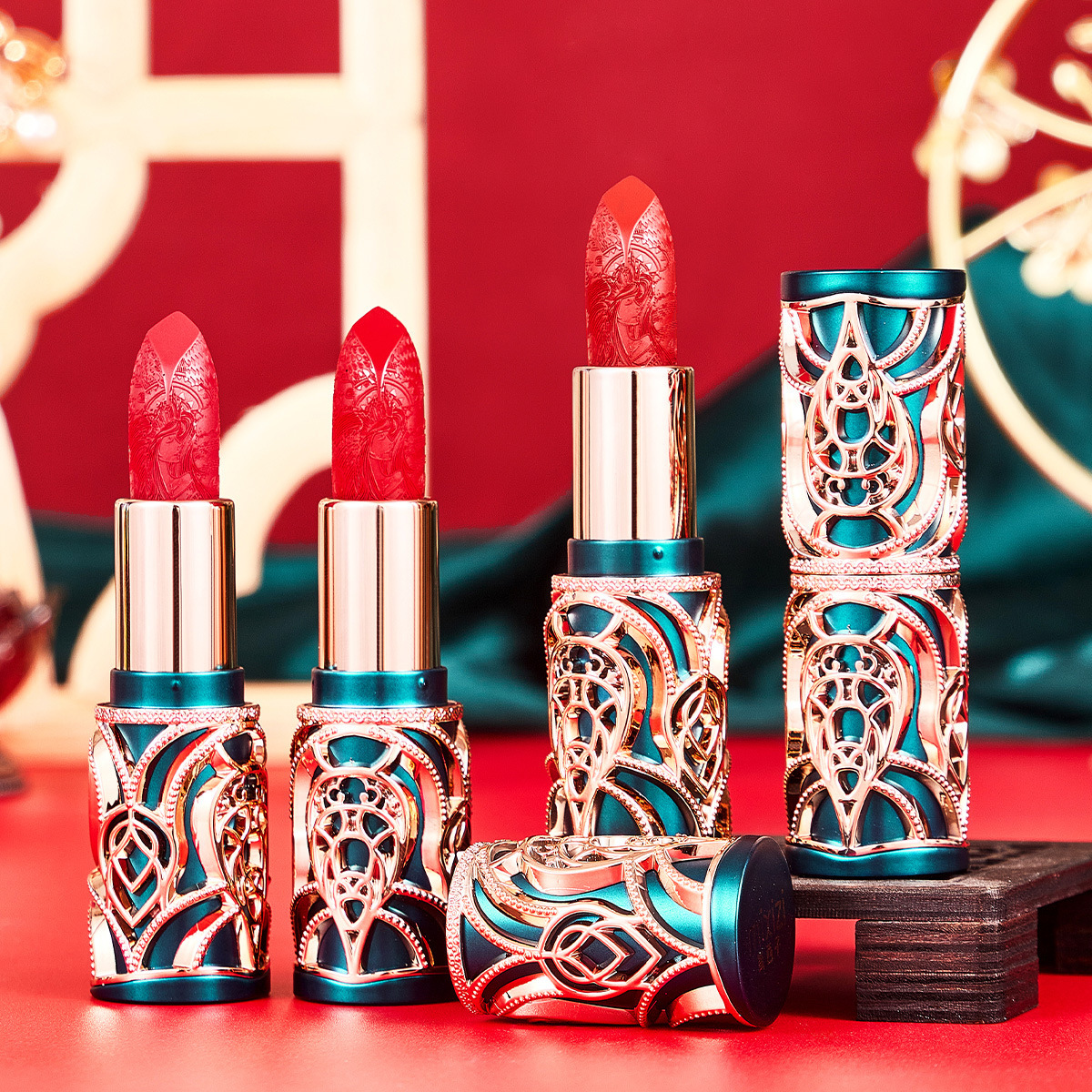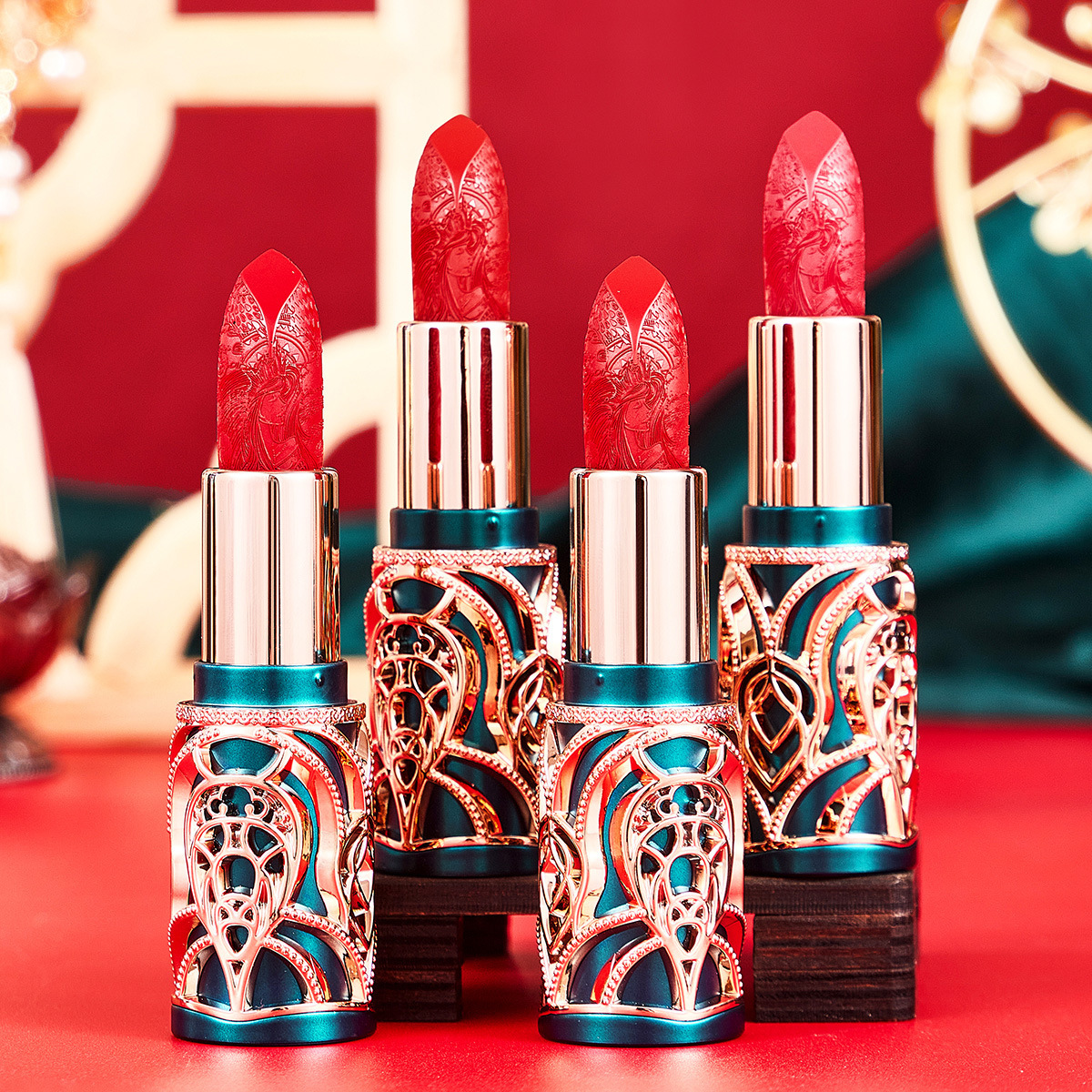 Mi Xi Zi Feng Yi Qiao Yan Carved Lipstick Not Easy to Dip Cup Falling Guofeng Authentic Student Fog Face Lipstick Wholesale