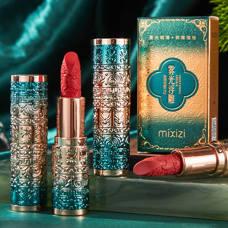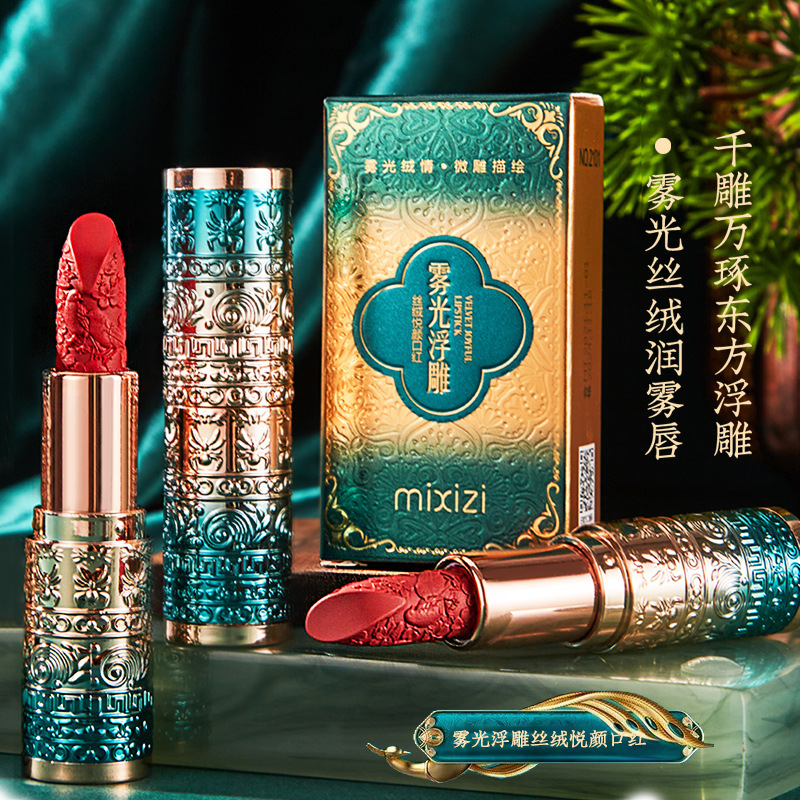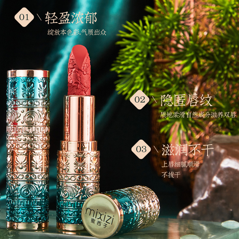 Mi Xizi Chinese style soft mist silky carved square tube lipstick not easy to touch Cup national fashion style genuine goods lipstick wholesale