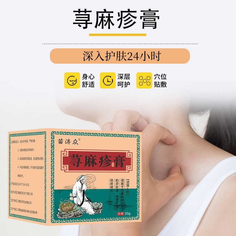 | nameOriginal | Miao Jizhong wind group choline scratch nettle middle grass rash ointment herbal skin wet itching red rash red swelling cream |
