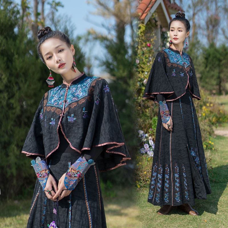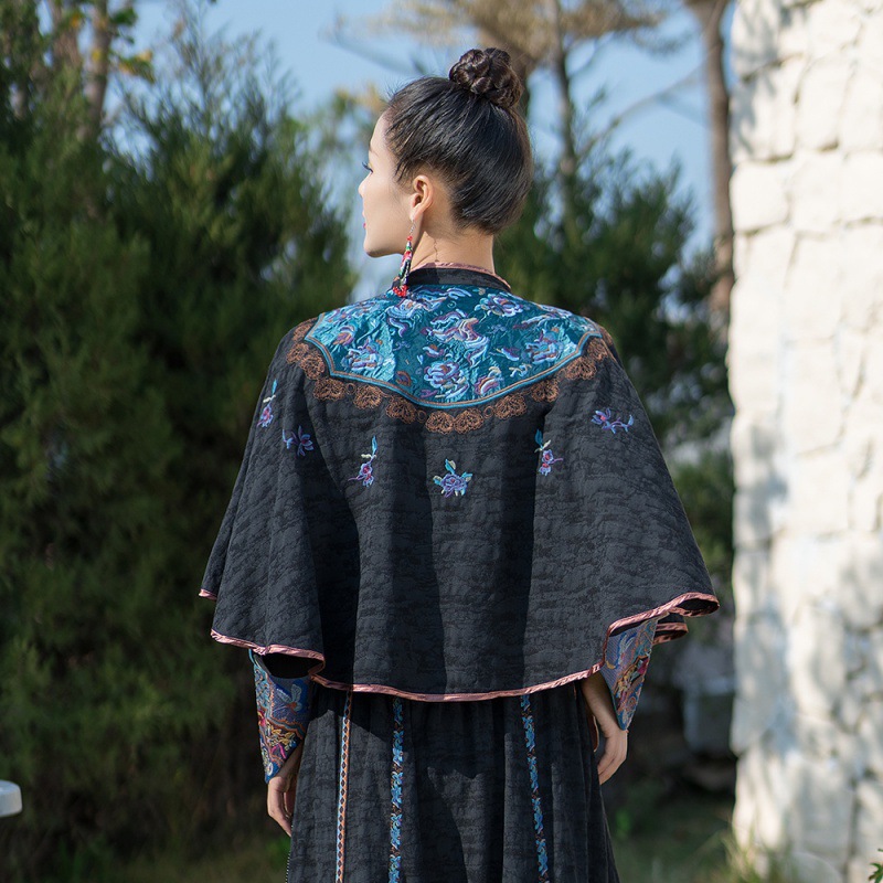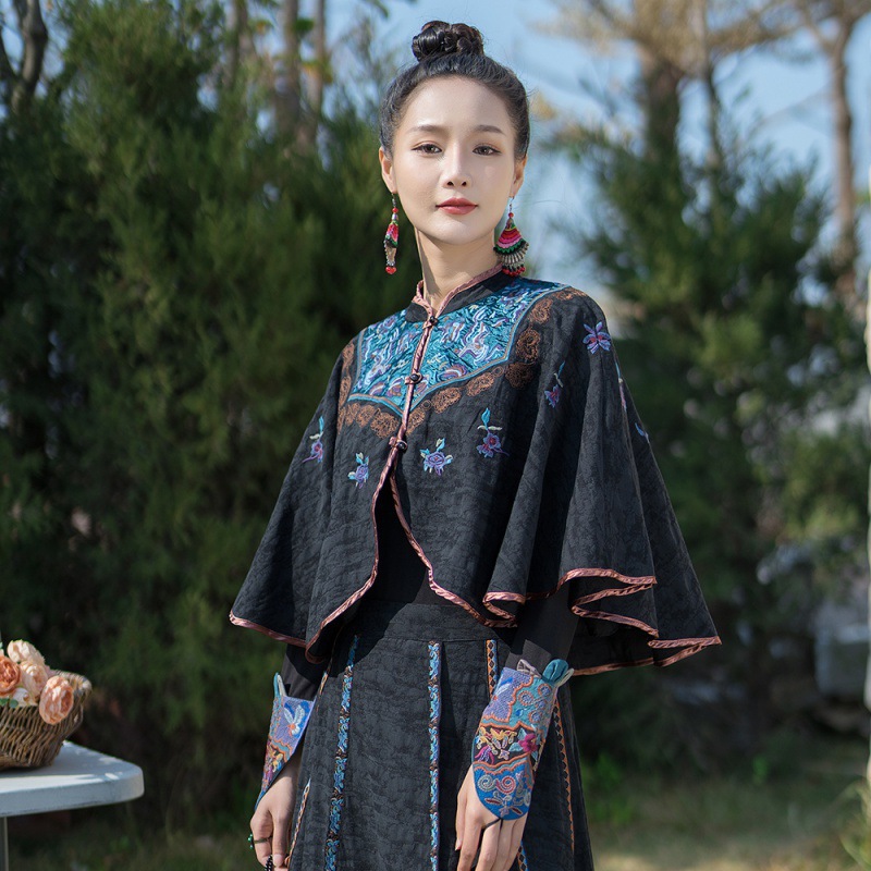 Miao Village Girl’s Chinese Style Modified Short Cloak Chinese Style Coat Shawl Outer Cloak Loose Top Cover