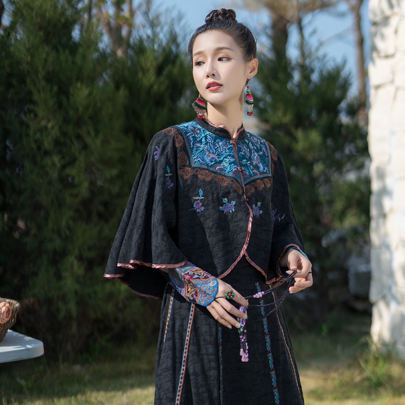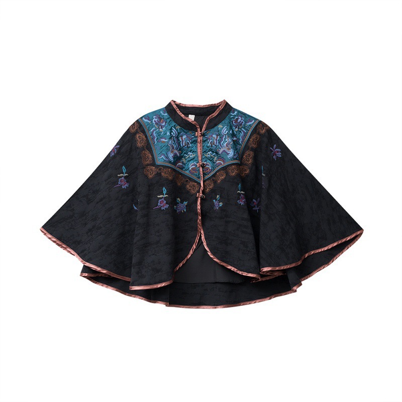 Miao Village Girl's Chinese Style Modified Short Cloak Chinese Style Coat Shawl Outer Cloak Loose Top Cover