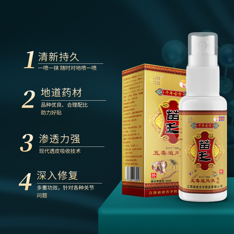 | nameOriginal | Miao Wang Wudu wind-chasing liquid spray soothing tendon liquid waist and leg joint pain running rivers and lakes factory direct wholesale delivery |