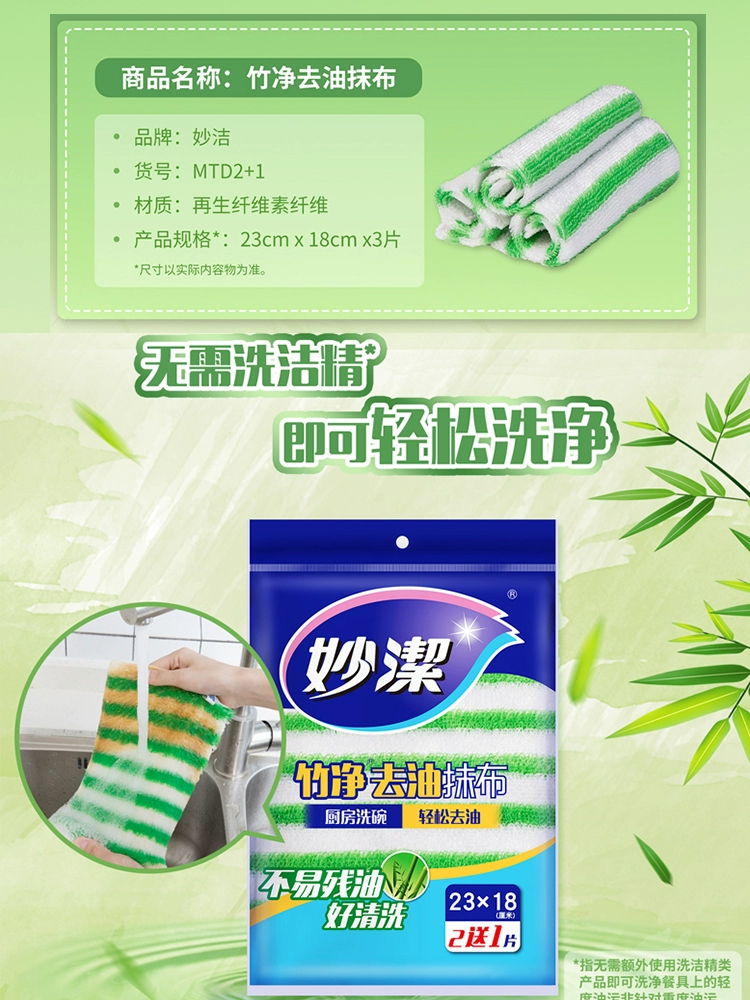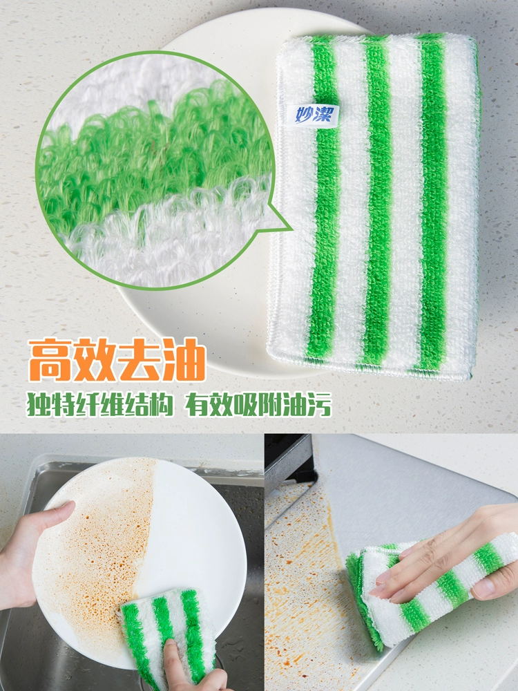 Miaojie bamboo fiber dishwashing cloth, household kitchen absorbent rag, not easy to stain with oil, degreasing towel, household cleaning and dishwashing cloth