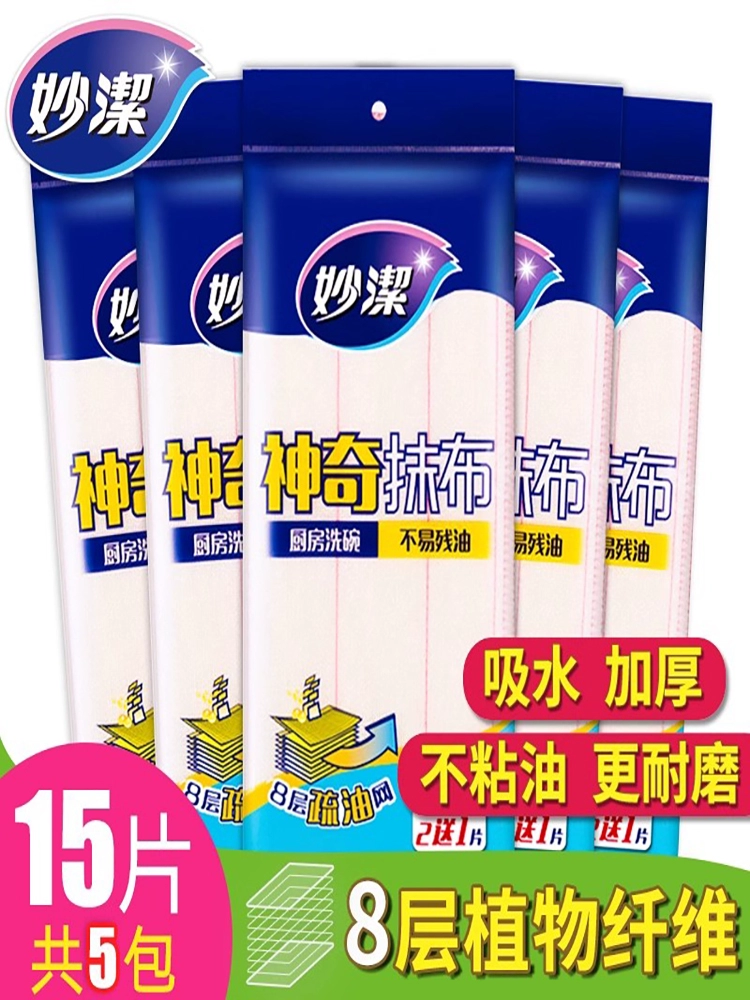 | nameOriginal | Miaojie magic rags 15 pieces 8-layer thickened rags kitchen cleaning dishwashing rags absorb water and do not shed lint combined pack |