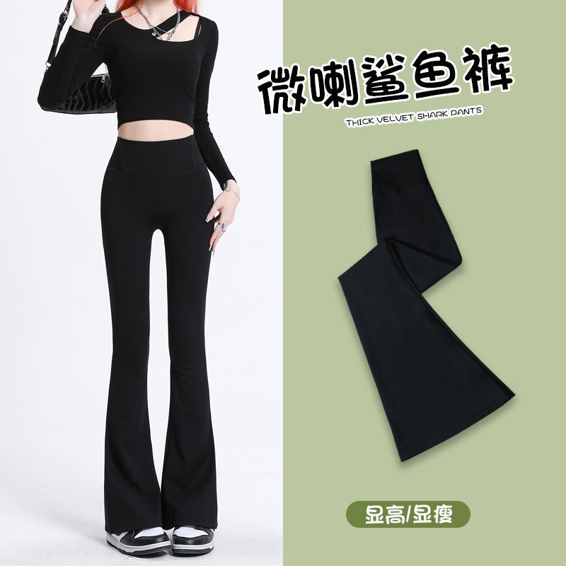 | nameOriginal | Micro horn pants 2024 spring and autumn women's high waist slimming belly contracting hip lifting stretch shark outer wear leggings |