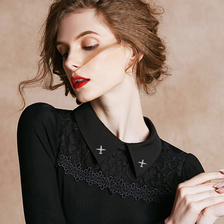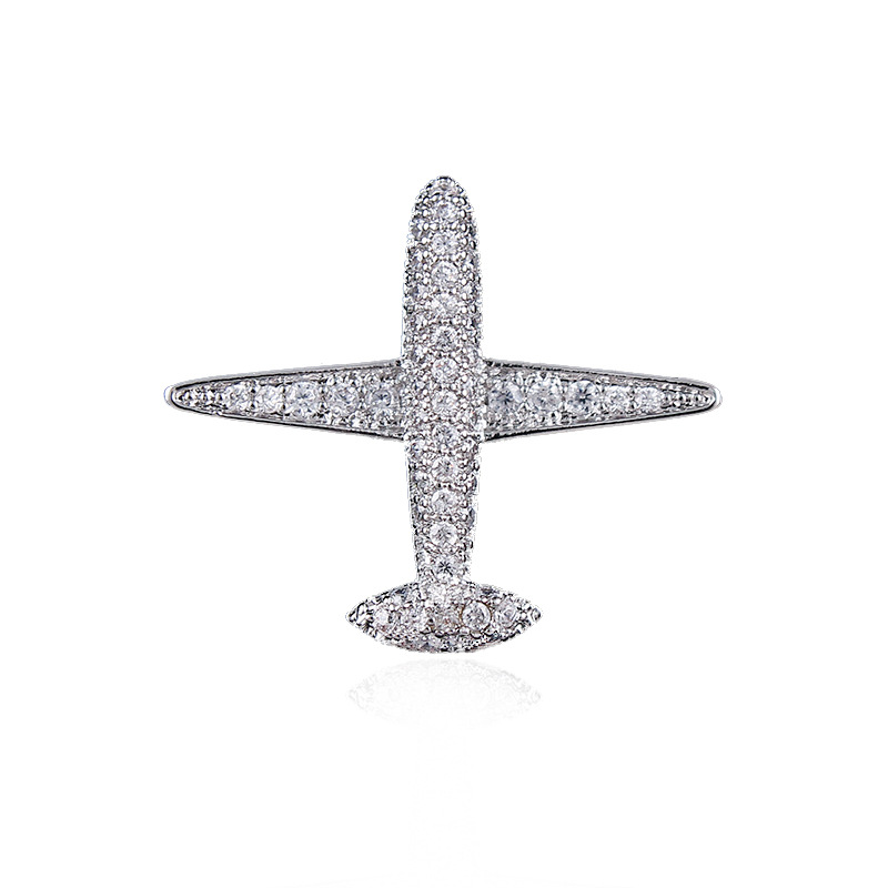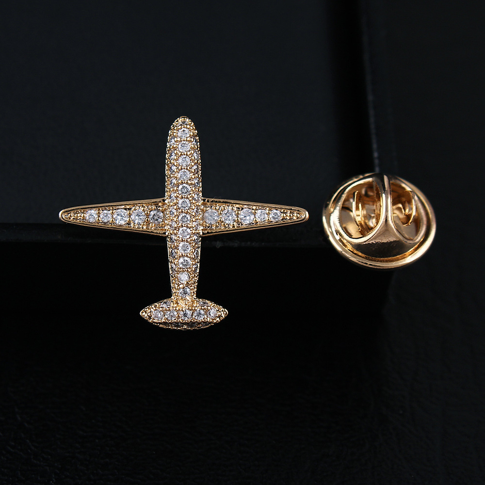Micro-inlaid zircon small aircraft men’s brooch collar pin gold plated high-grade crystal suit decorative anti-light buckle