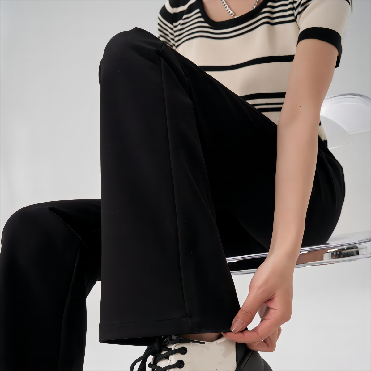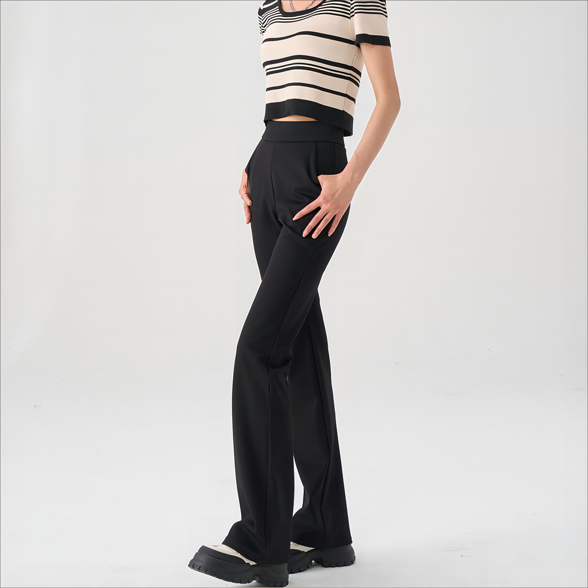 [Micro-pull super-model pants] spring women’s clothing new brocade cotton elastic relaxed feeling slimming long-leg micro-calf pants casual pants