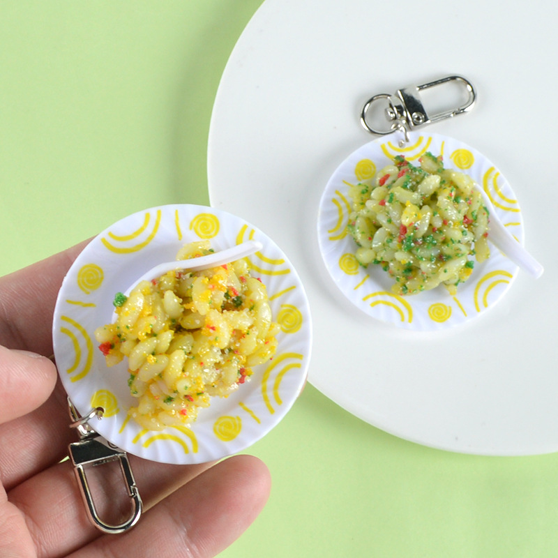 | nameOriginal | Micro simulation egg fried rice keychain fun food play simulation food door buckle pendant play house toys wholesale |