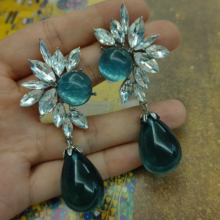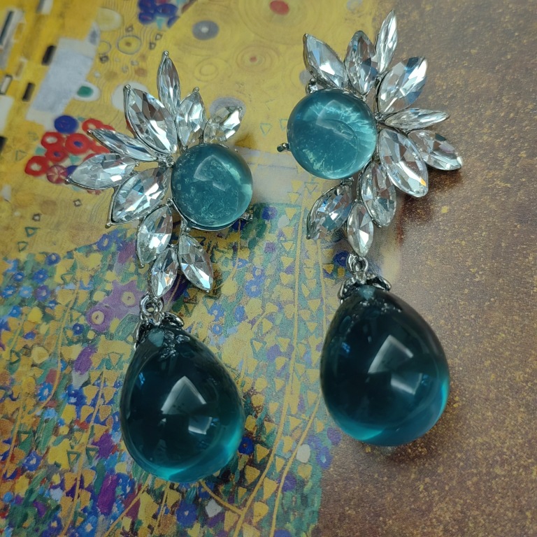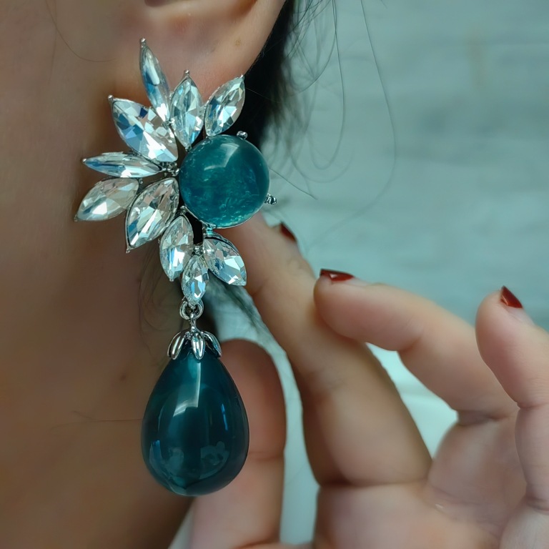 Mid-ancient blue stud earrings silver needle earrings dinner retro Noble elegant shining texture color personality Internet celebrity