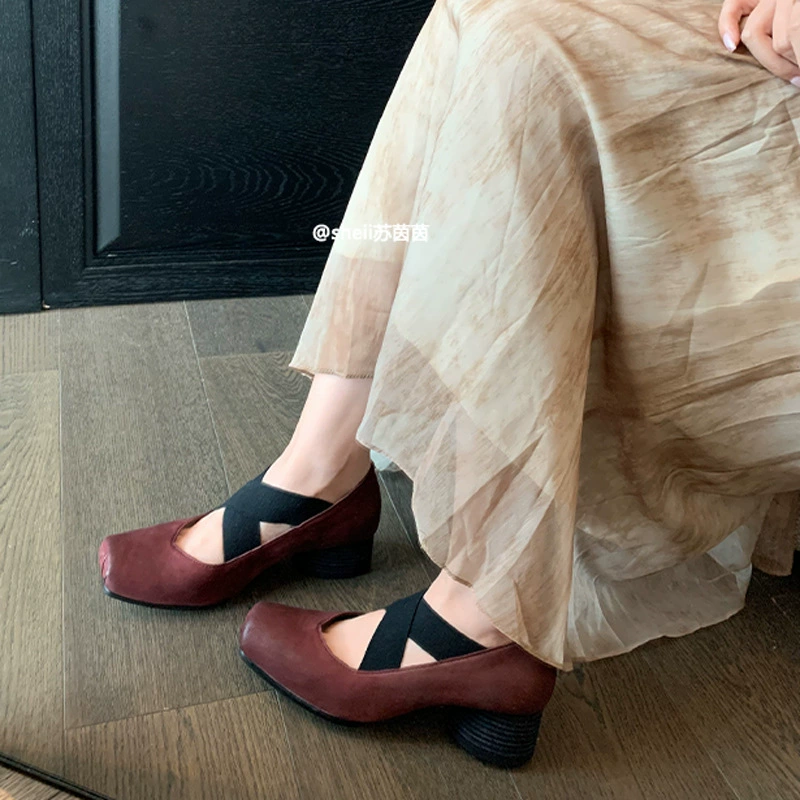 | nameOriginal | Mid-heeled retro pig nose cross-strap soft sole shoes |