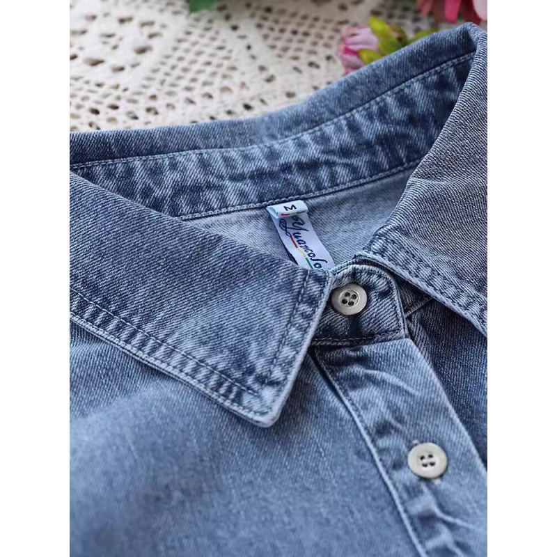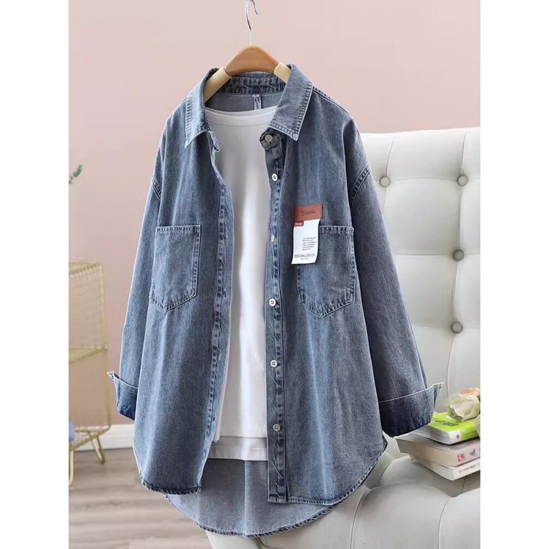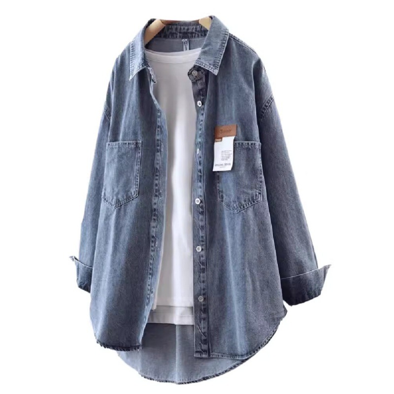 | nameOriginal | Mid-length Denim shirt 2024 spring new loose single-breasted Denim jacket casual loose long sleeve shirt |