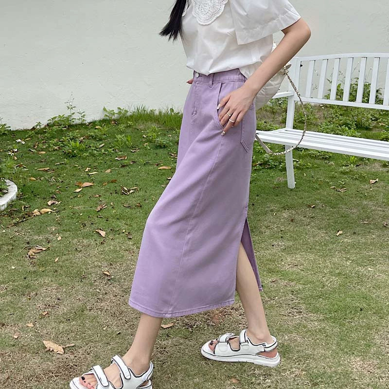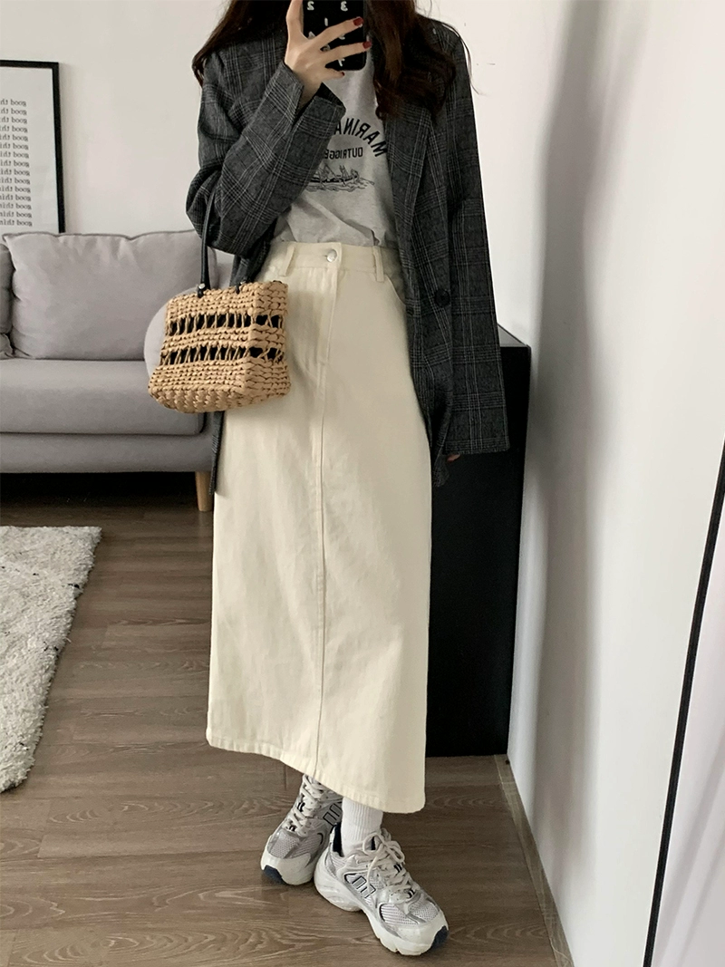 | nameOriginal | Mid-length fat mm elastic waist slimming denim skirt |