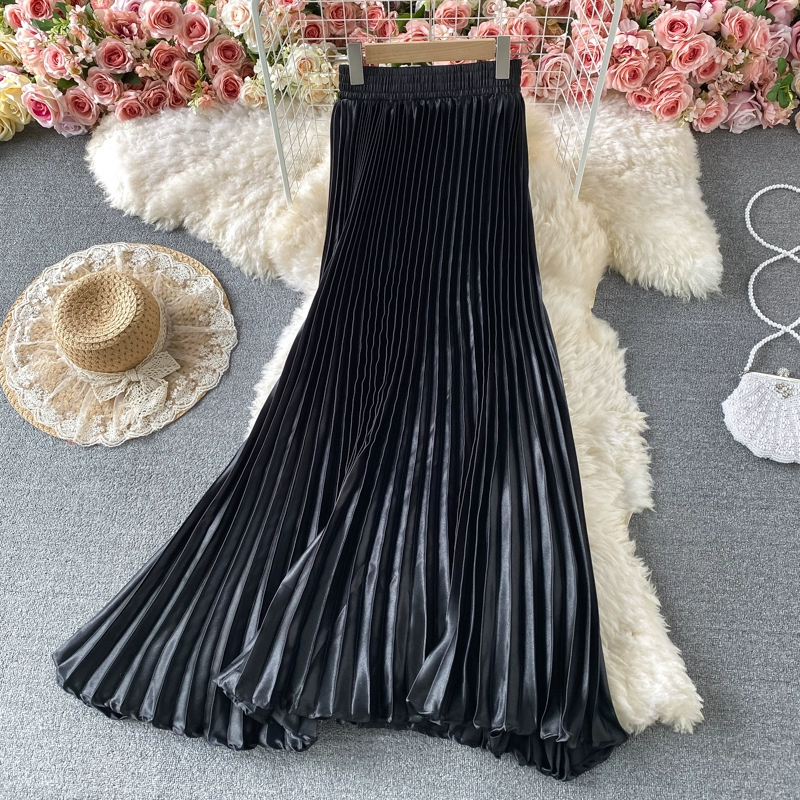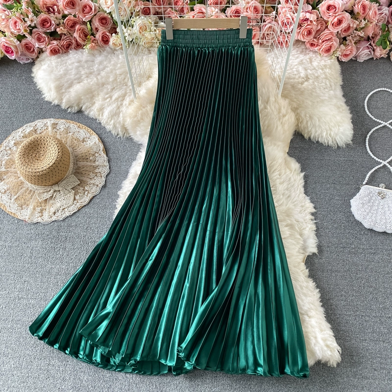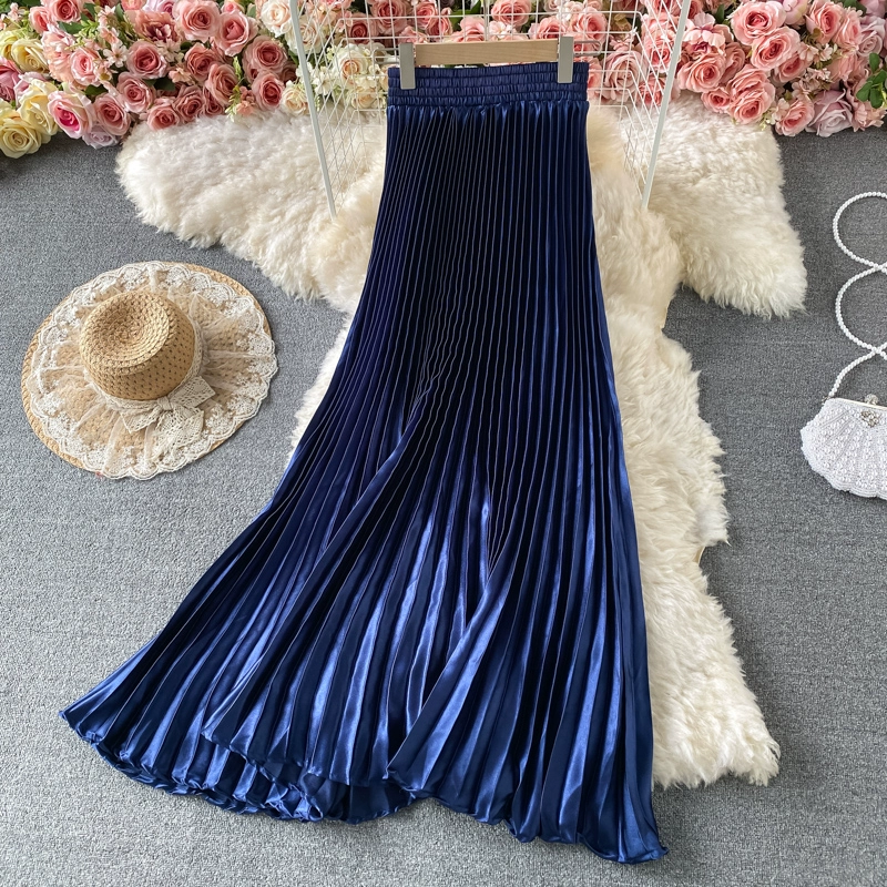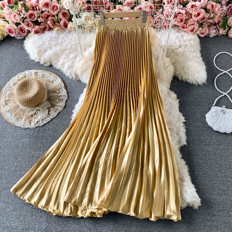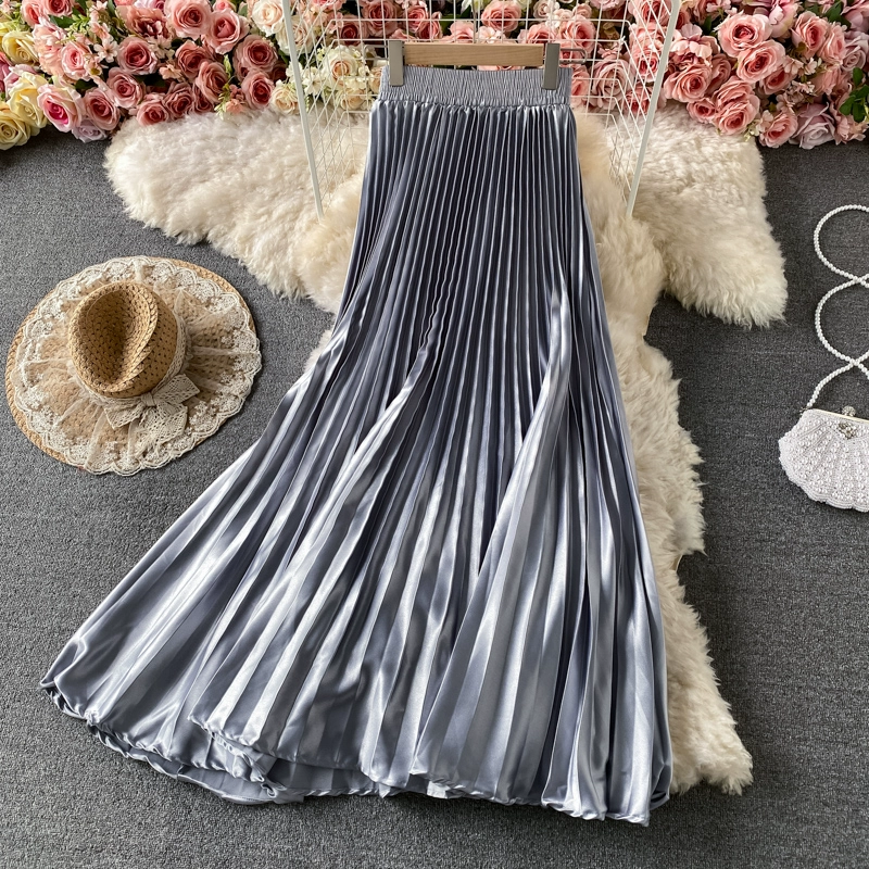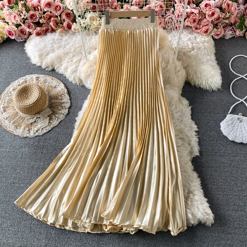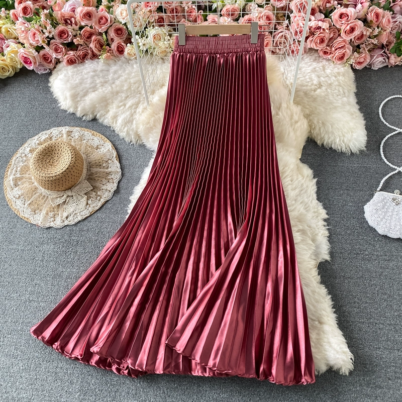 | nameOriginal | Mid-length glossy Korean satin pleated skirt |