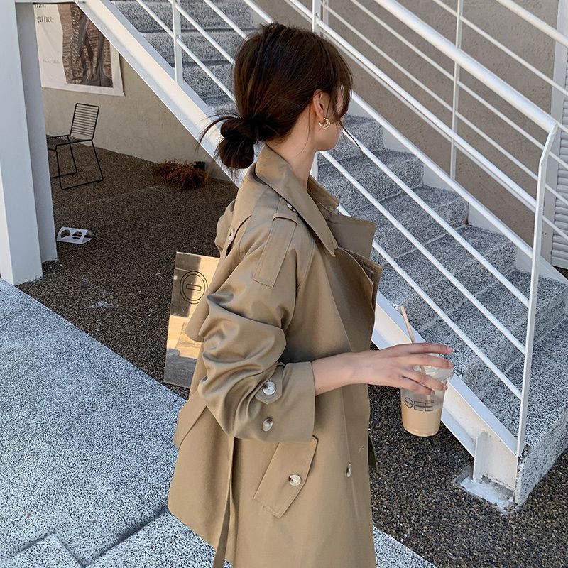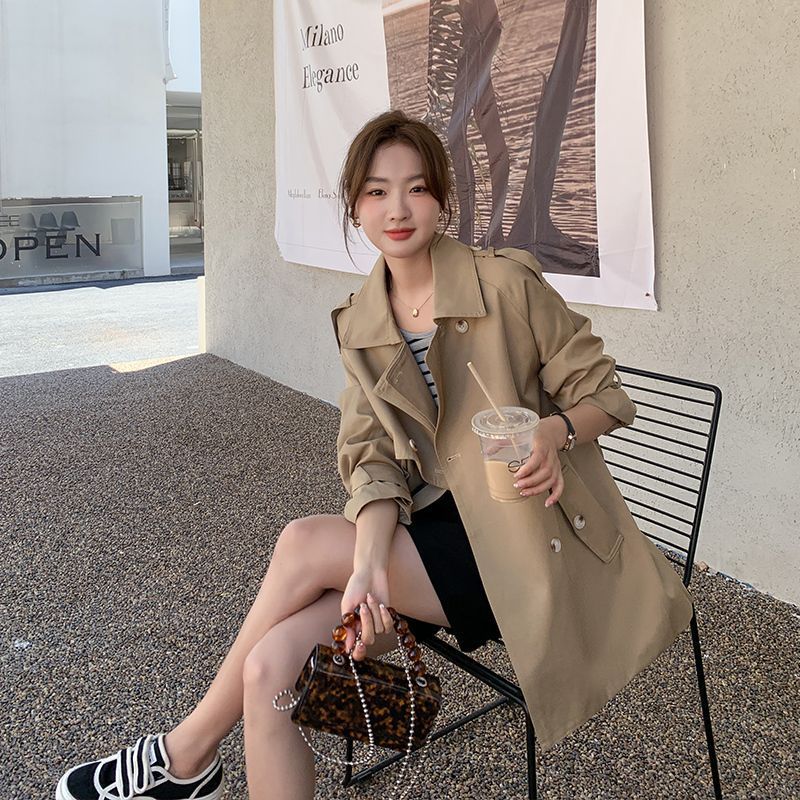 | nameOriginal | Mid-length Hepburn-style trench coat for small 2023 early spring new this year's popular overcoat khaki exterior style |