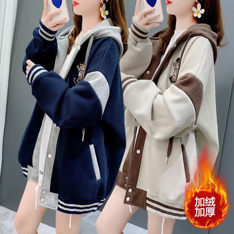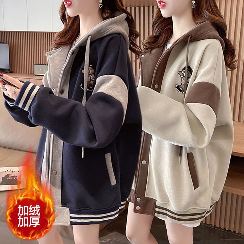| nameOriginal | Mid-length Hooded Sweatshirt for Female Students Autumn and Winter Fleece-lined Thickened Loose Large Size Casual All-match Baseball Coat for Women |