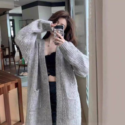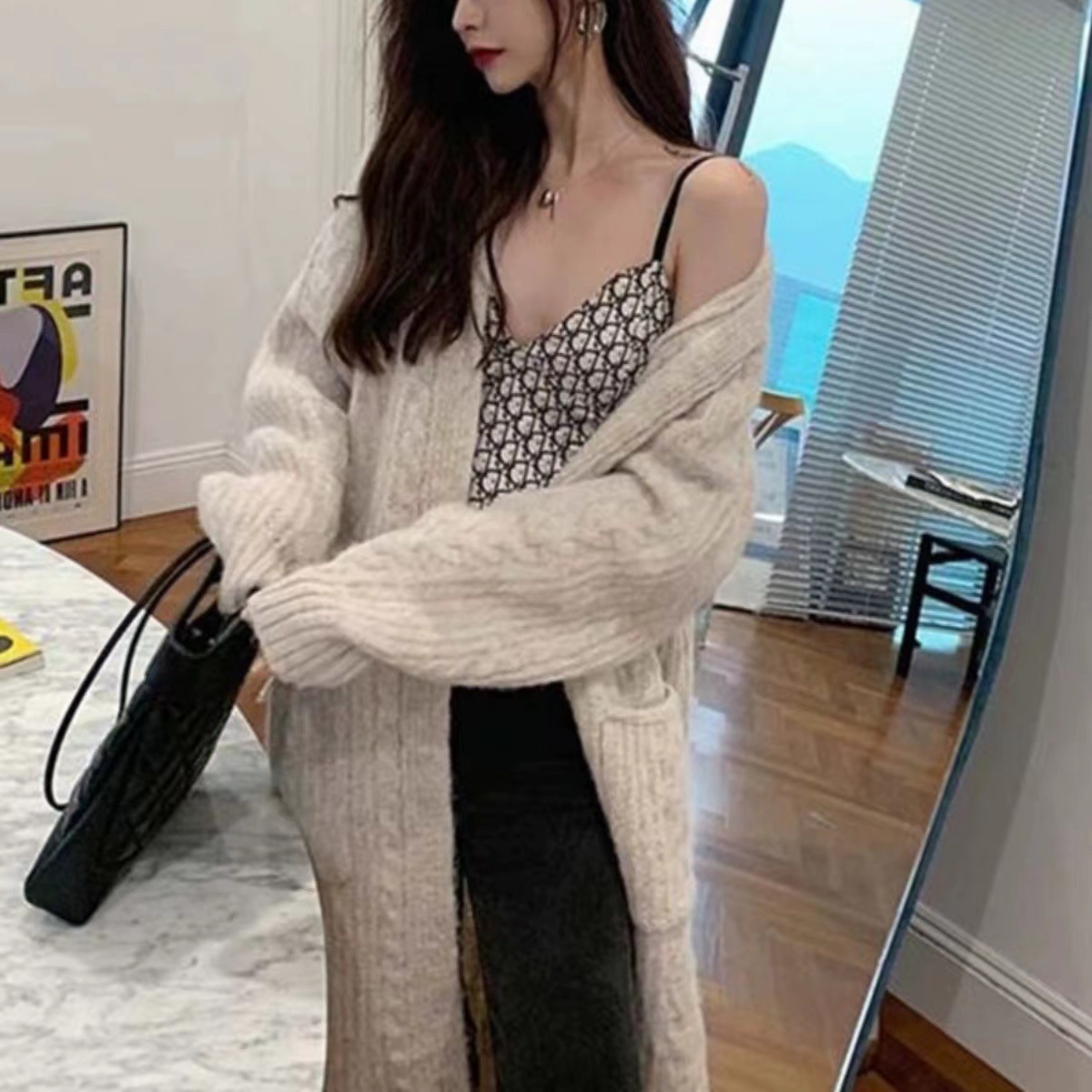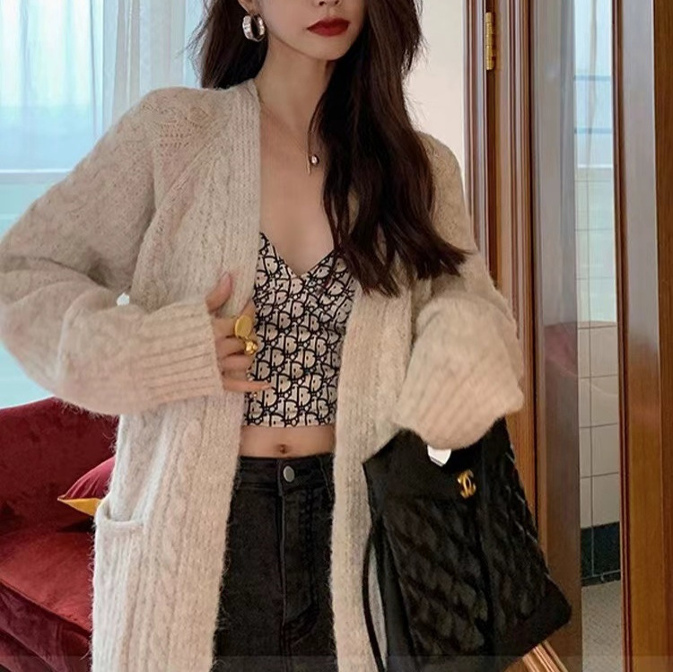 Mid-length Lazy Style Cardigan Knitted Coat Women’s 2024 Autumn New Loose Elegant Twist Sweater Gentle Style