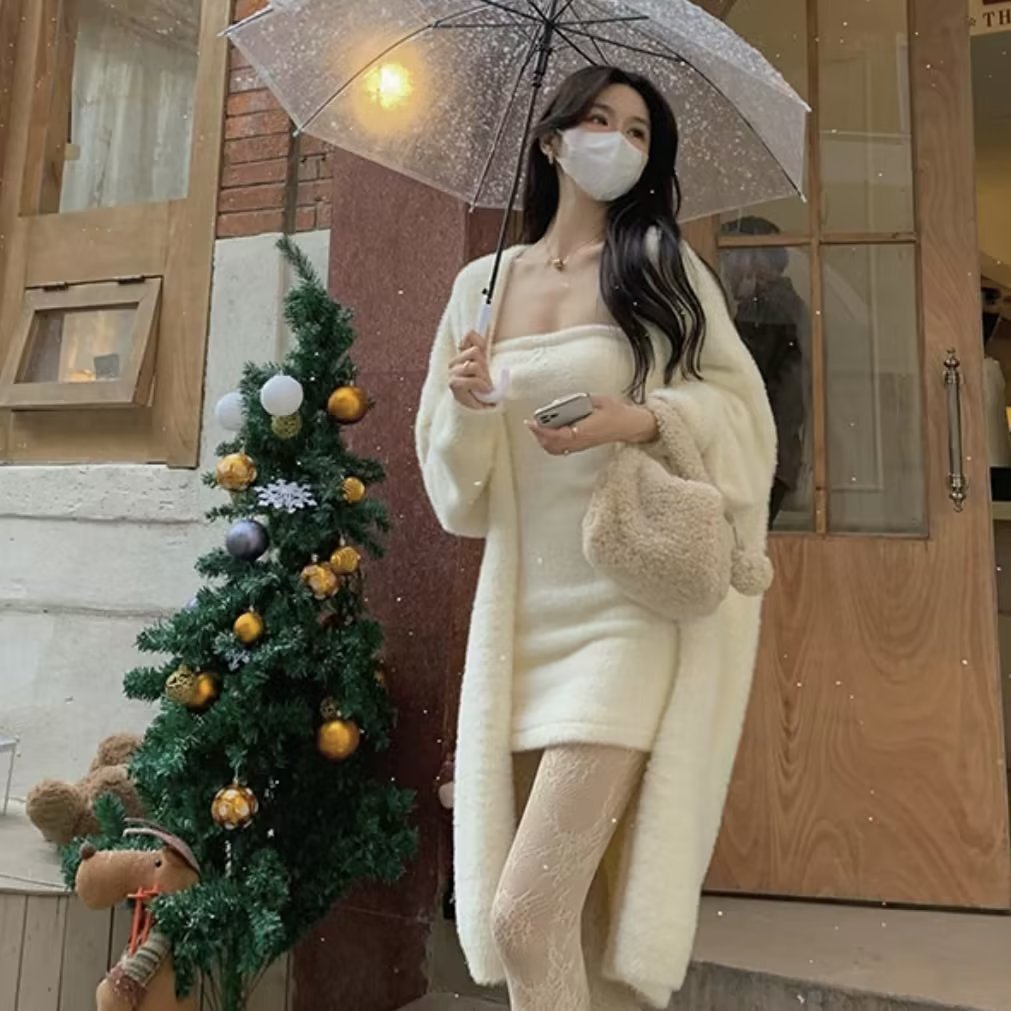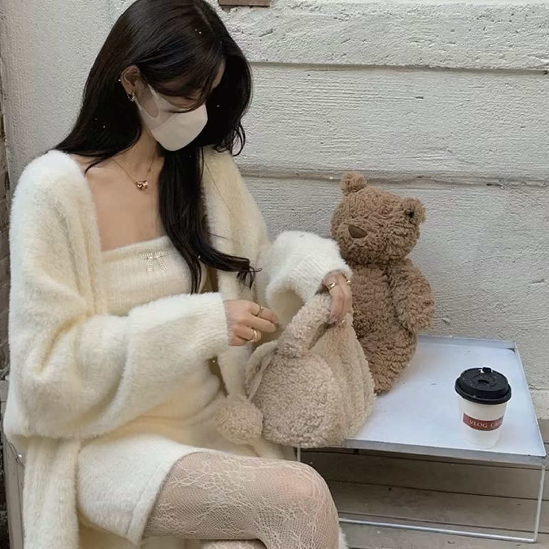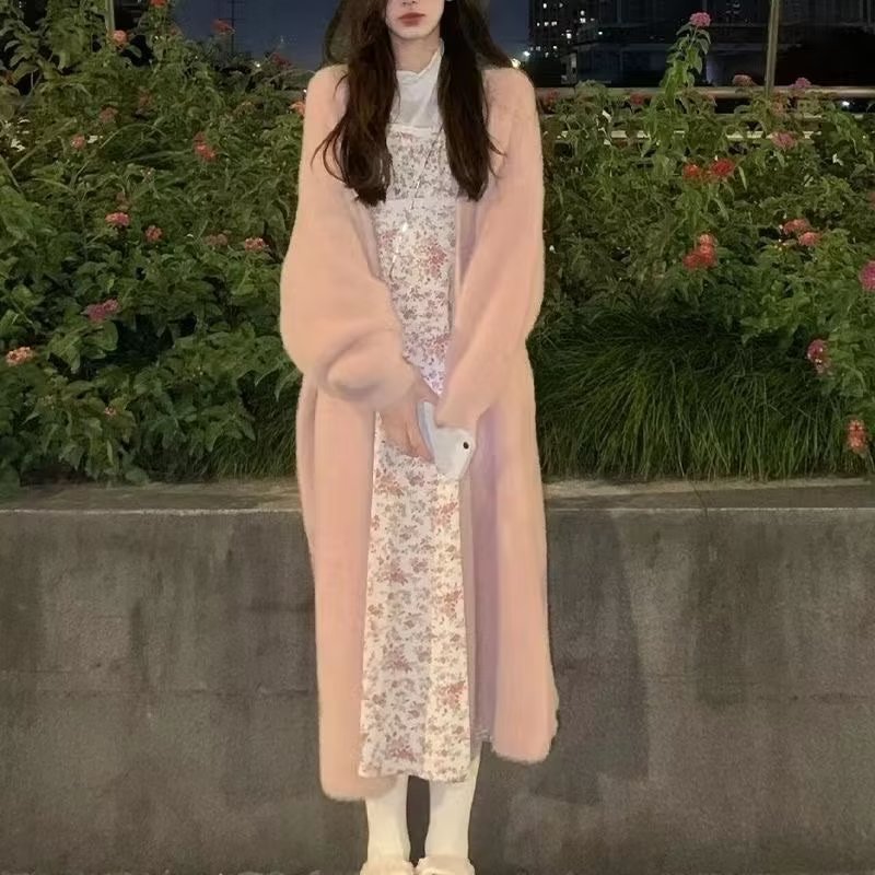 | nameOriginal | Mid-length mink velvet knitted cardigan autumn and winter Korean style gentle lazy style loose sweater coat outer top fashion |