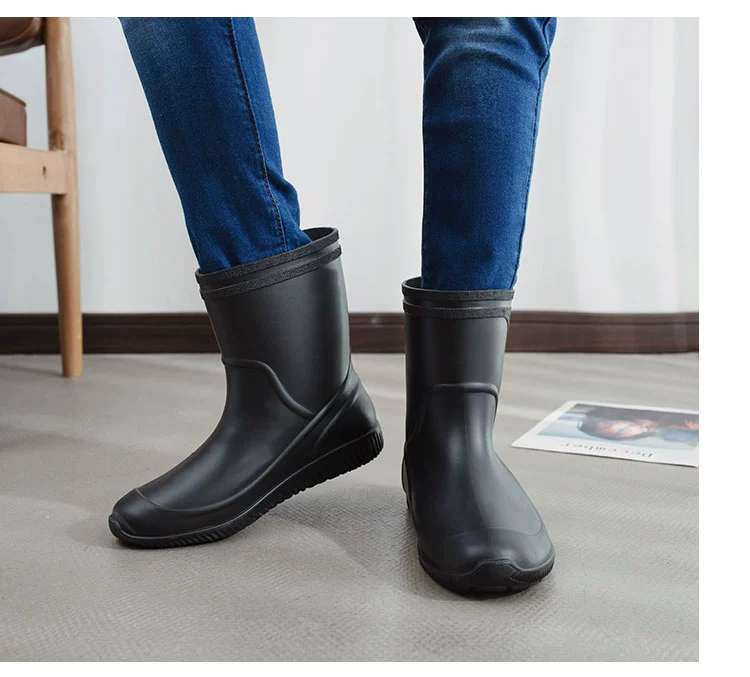 Mid-length non-slip waterproof car wash rain boots