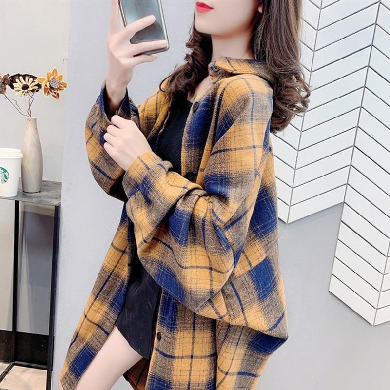 Mid-length Over-the-knee Plaid Shirt Women’s Outer Wearing Spring and Summer Design Niche Loose Long-sleeved Scrub Jacket Trendy