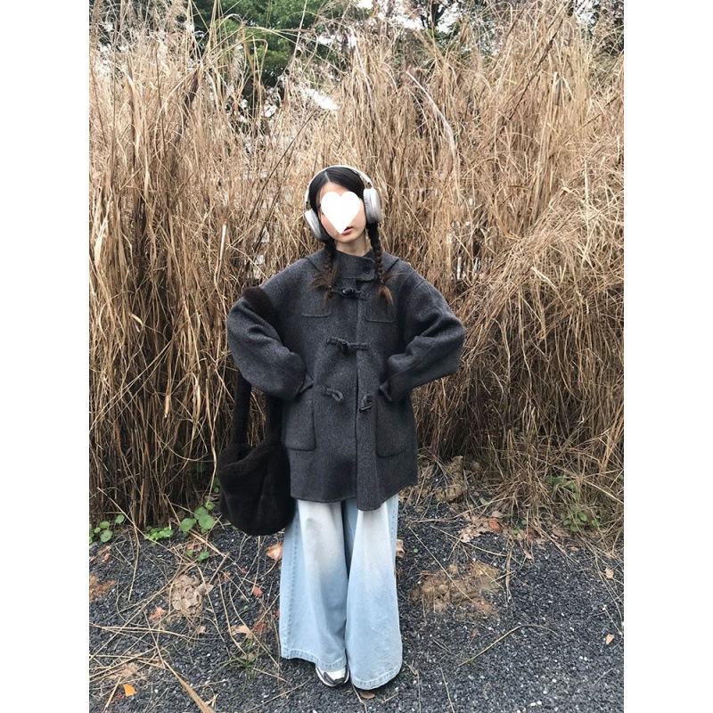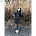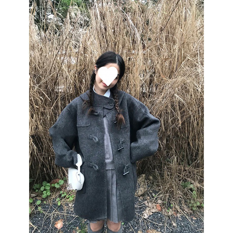 | nameOriginal | Mid-length preppy style hooded gray horn buckle coat autumn and winter New Korean style commuter woolen coat |