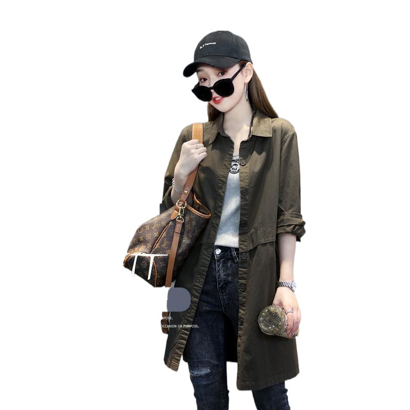 Mid-length Pure Cotton Coat Women’s Spring and Autumn New Korean-style Wide Age-reducing Loose All-match Western-style Casual Jacket