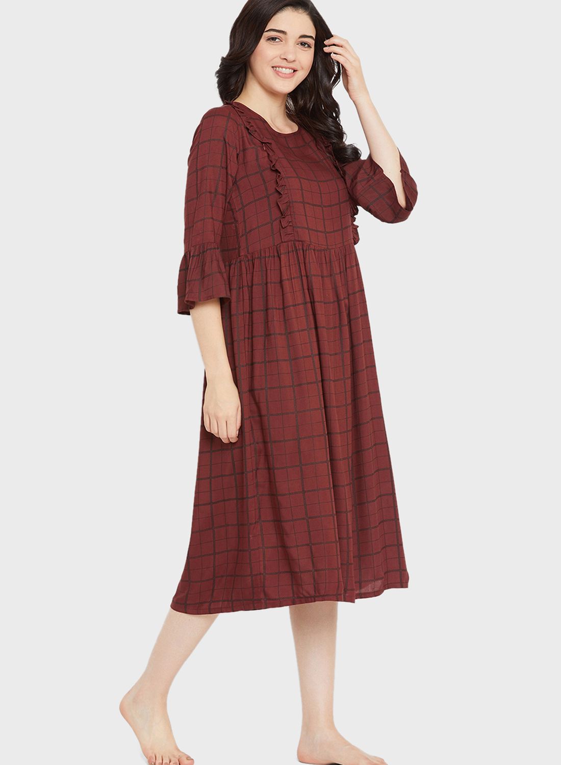| nameOriginal | Feeding Classic Checks Mid Length Night Dress – Rayon |