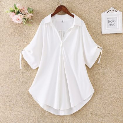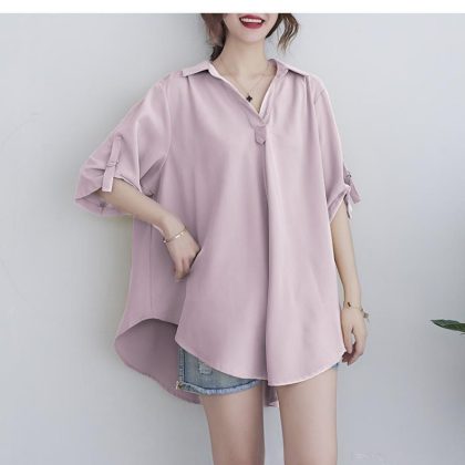 | nameOriginal | Mid-length short-sleeved chiffon shirt for women 2024 summer New plus size loose waist slimming chiffon shirt top for women |