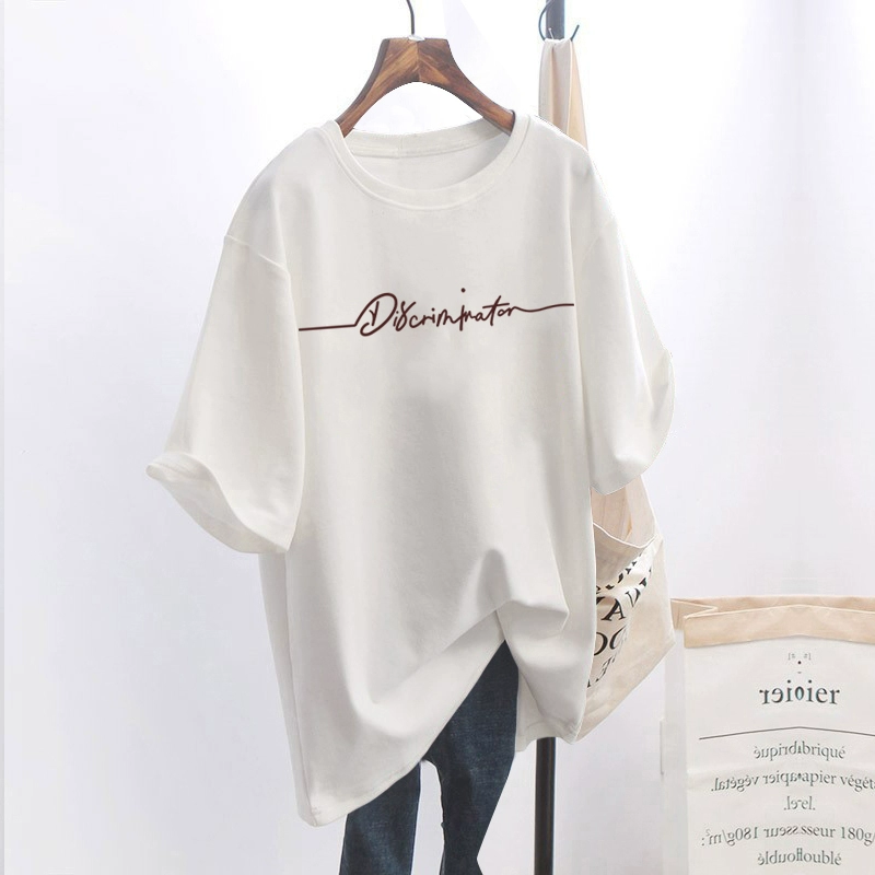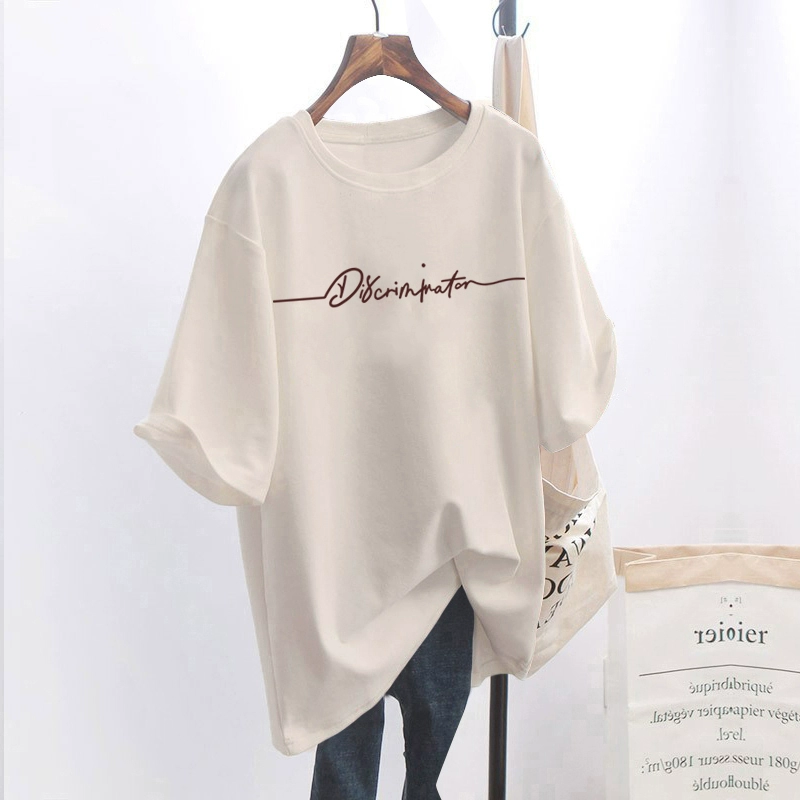 | nameOriginal | Mid-length short-sleeved large version t-shirt for women 2024 new summer white large size loose half-sleeved butt-covering T-shirt top |