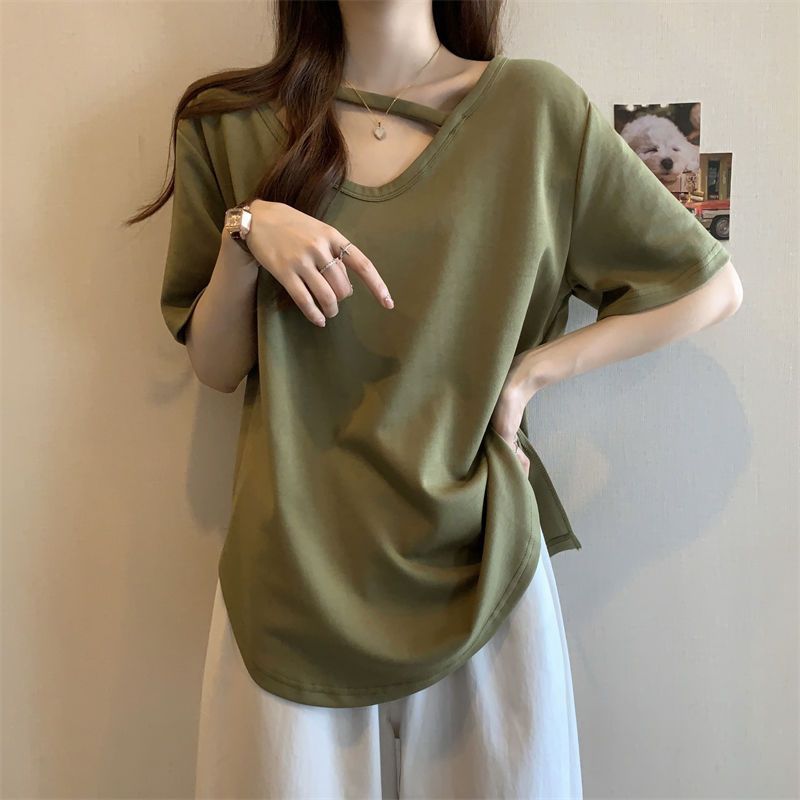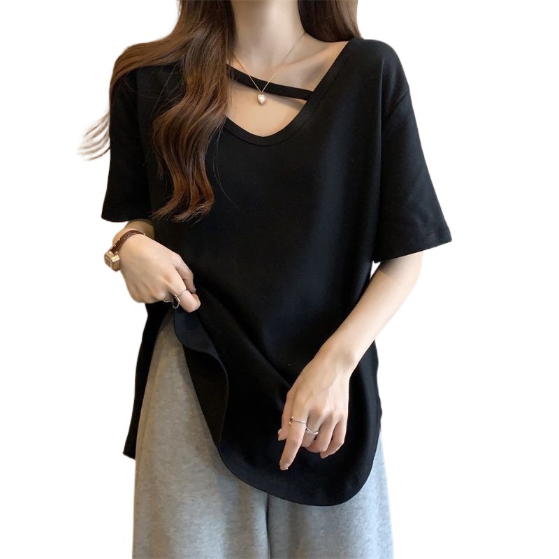 | nameOriginal | Mid-length Short-sleeved Shirt Women's Summer Base Shirt 2024 New Loose Slimming plus size Design Split Top |