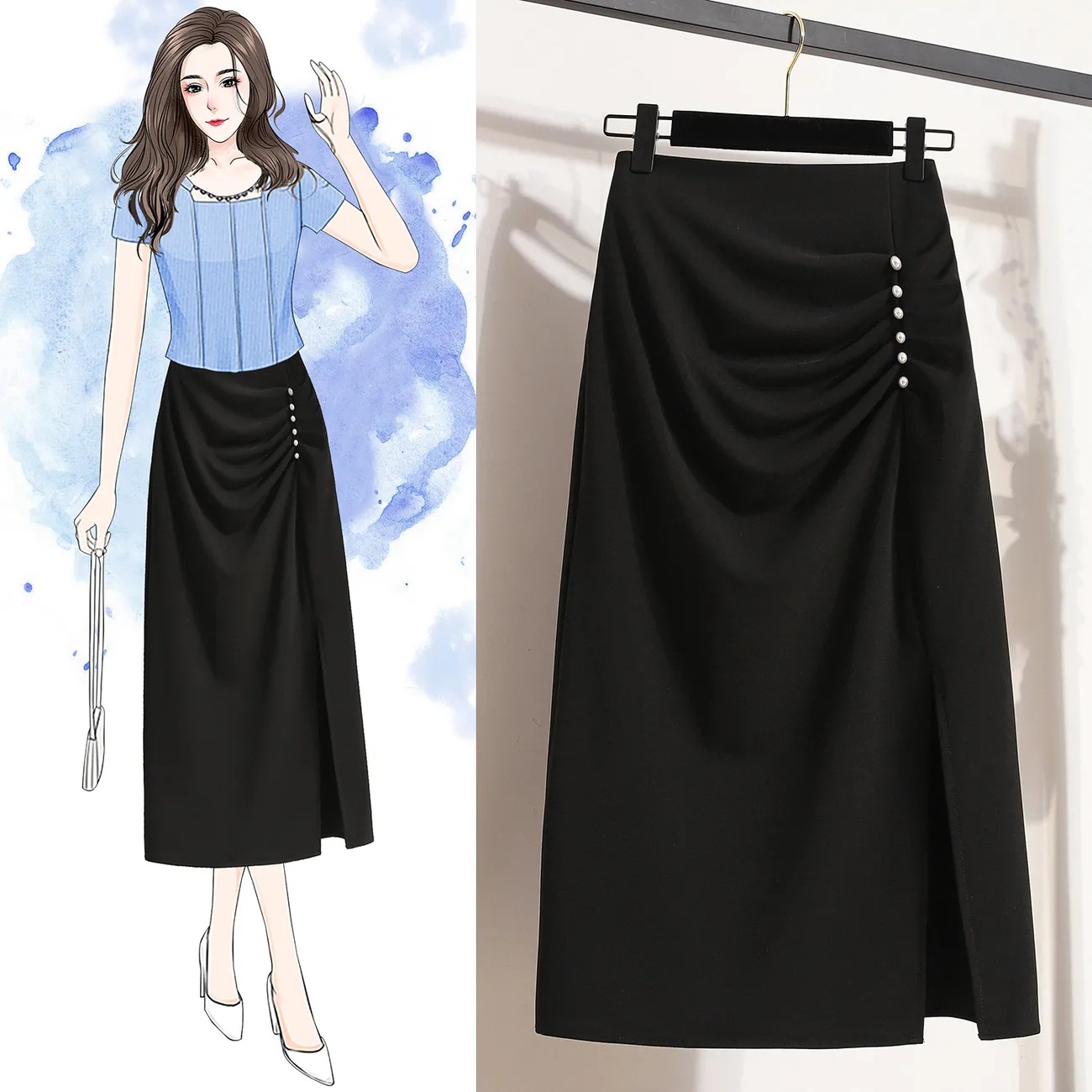 | nameOriginal | Mid-length Skirt Women's plus size Design Button Pleated Split One-step Skirt chubby girl Hip Covering Slim A- line Skirt |