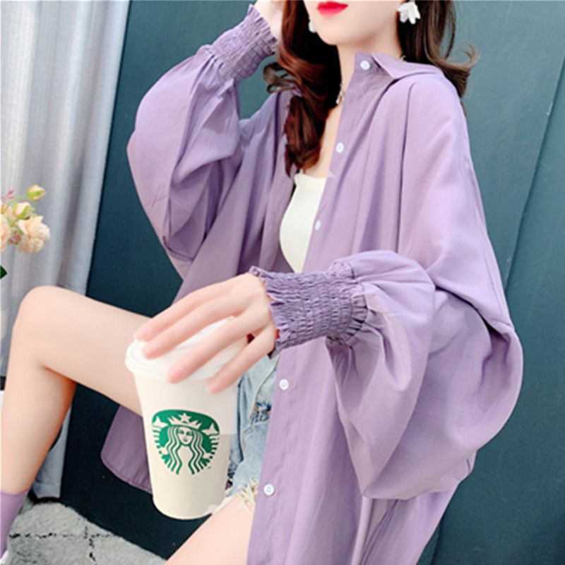 Mid-length Sunscreen Shirt Women's 2024 Summer New Loose Top Korean Style Stylist Shirt Cardigan Jacket