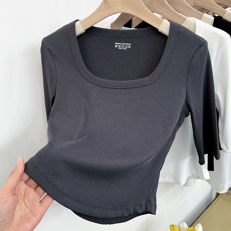 | nameOriginal | Mid-sleeve slimming spring and summer threaded slim top T-shirt |