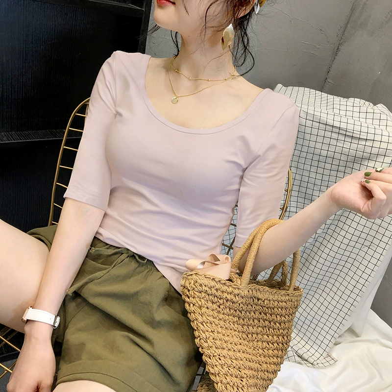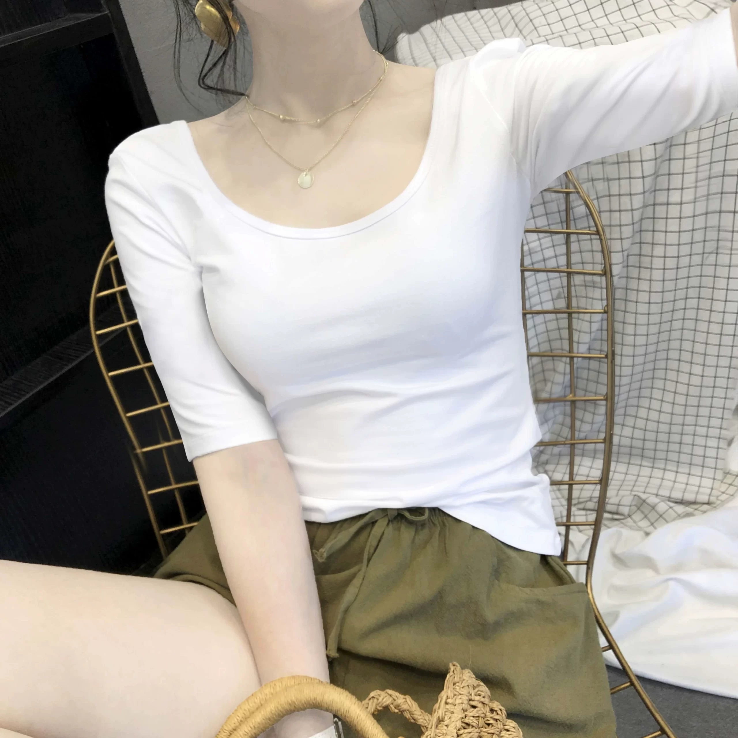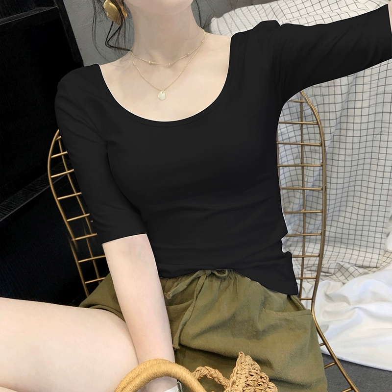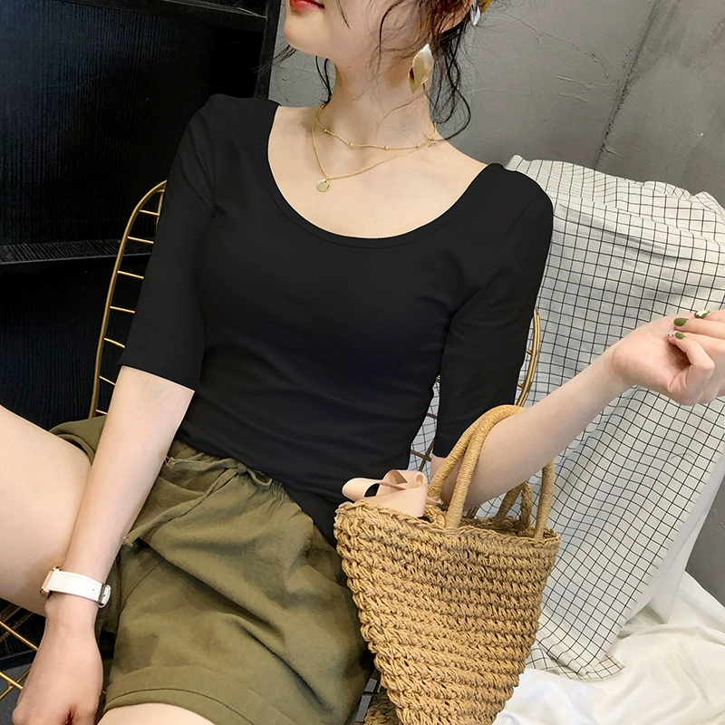 | nameOriginal | Mid-sleeve tight-fitting u-neck pure cotton spring and autumn backless white t-shirt |