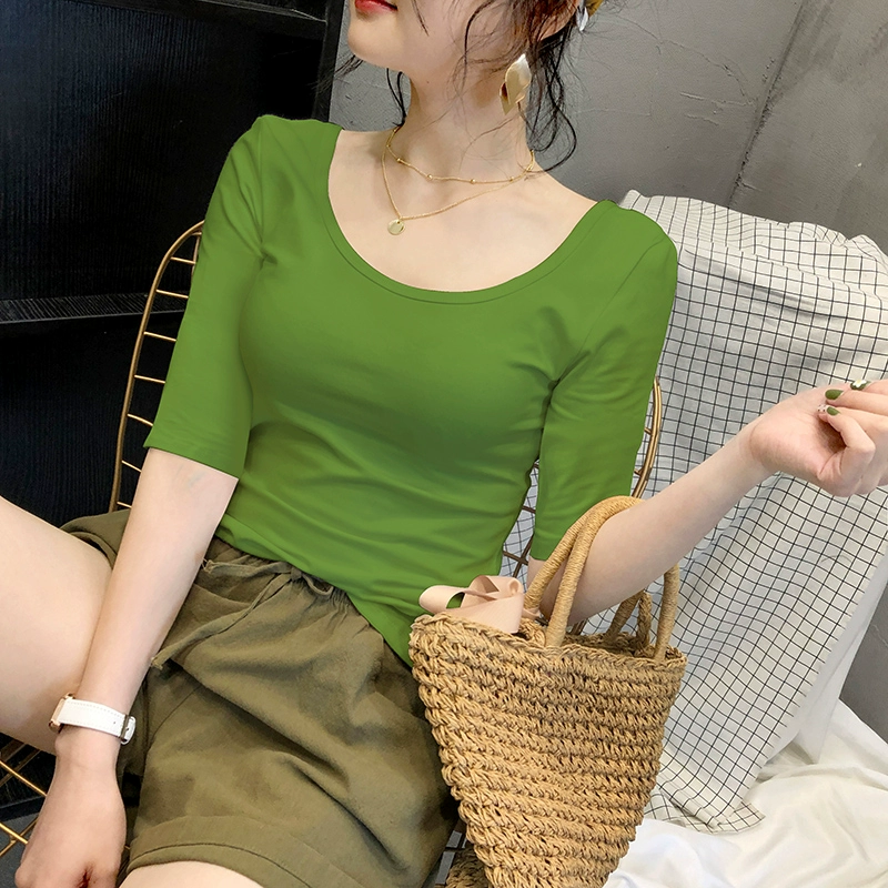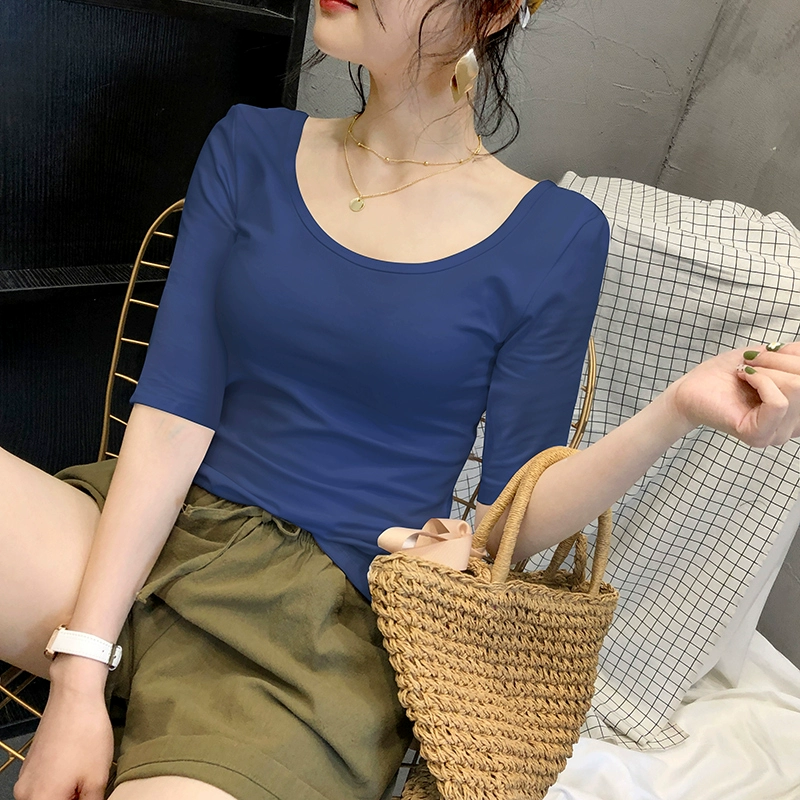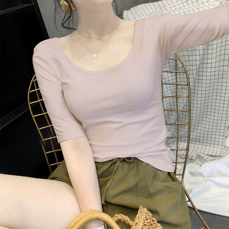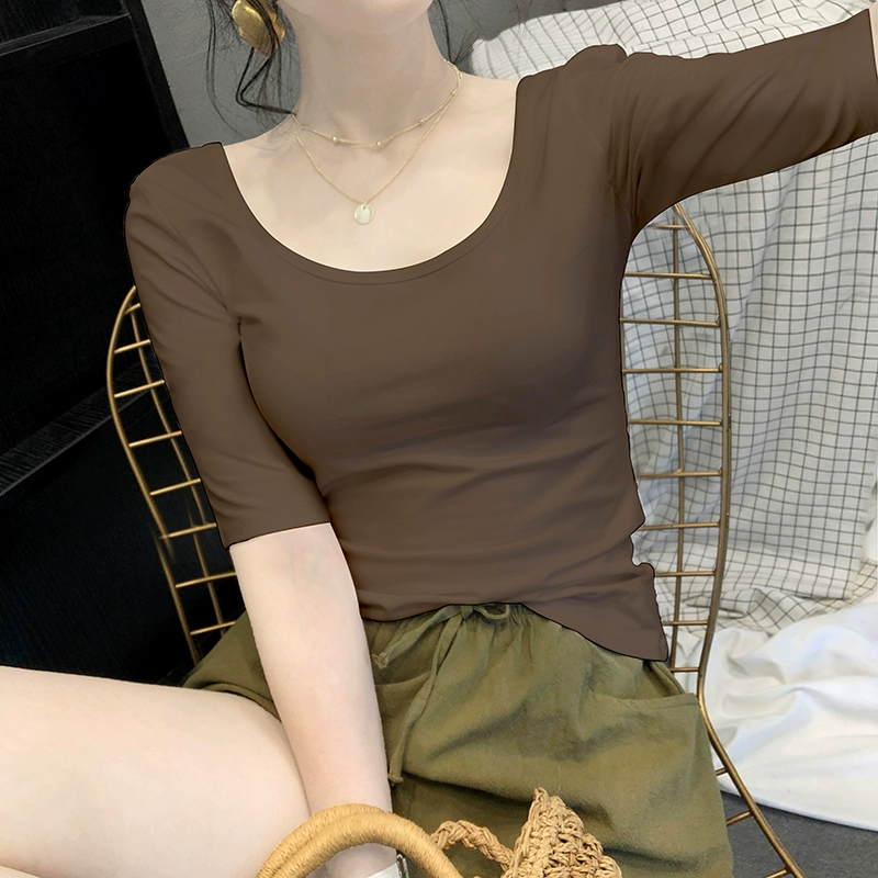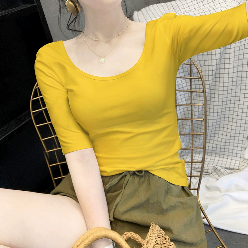 | nameOriginal | Mid-sleeve tight-fitting u-neck pure cotton spring and autumn backless white t-shirt |