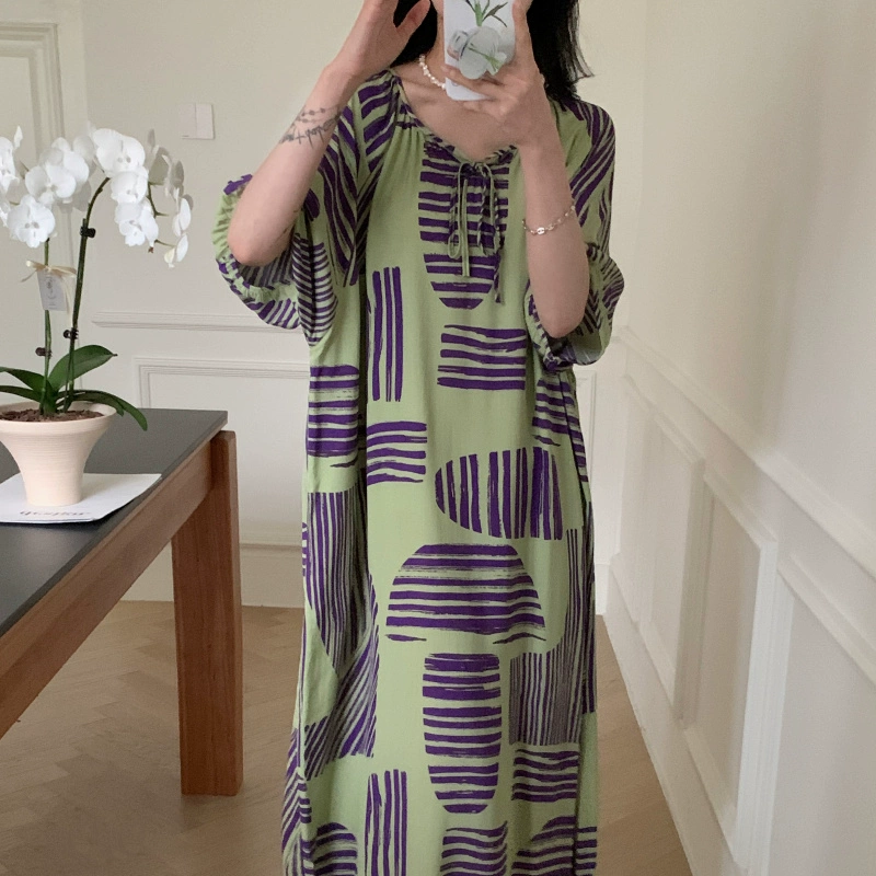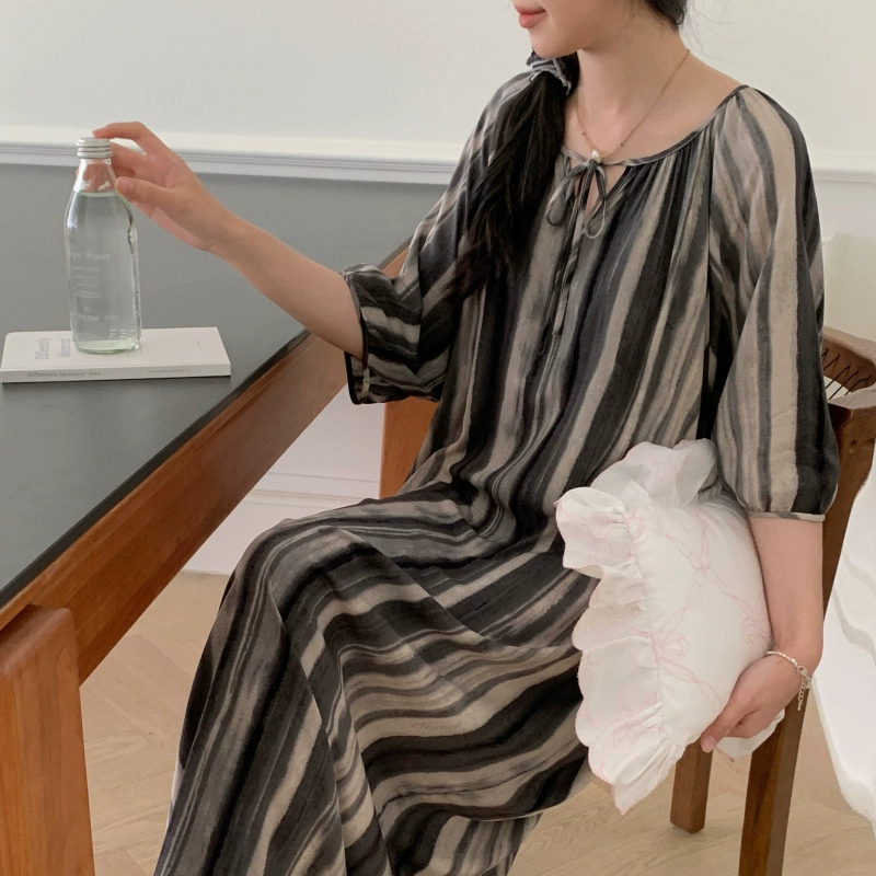 | nameOriginal | Mid-sleeve women's summer casual stripes can be worn outside cotton silk |