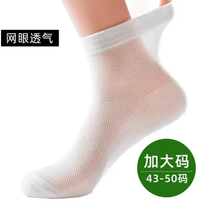 | nameOriginal | Mid-tube disposable socks for men, large size, solid color, summer, thin, breathable cotton mesh, plus fat, short, loose mouth, wh |