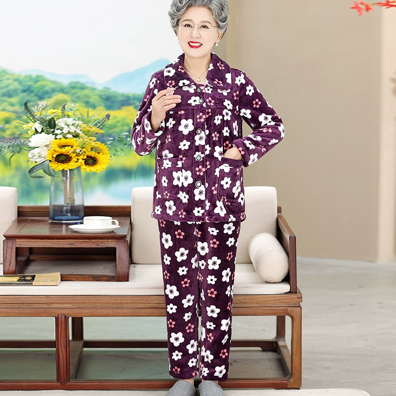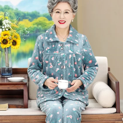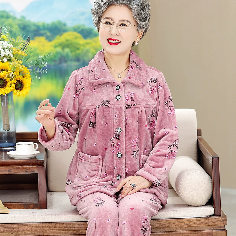 | nameOriginal | Middle-aged and elderly autumn and winter pajamas for women with velvet and thickened granny coral velvet home wear set 2024 new mothers long sleeves |