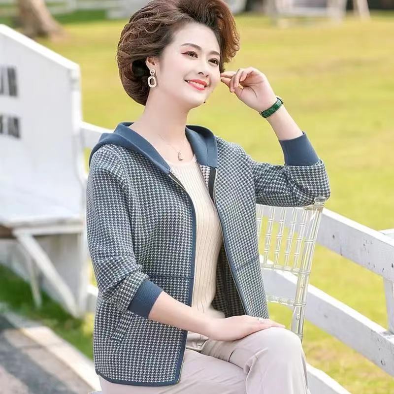 | nameOriginal | Middle-aged and elderly coat mom spring hooded knitted cardigan fashion Western style women Spring and Autumn New cardigan top fashion |